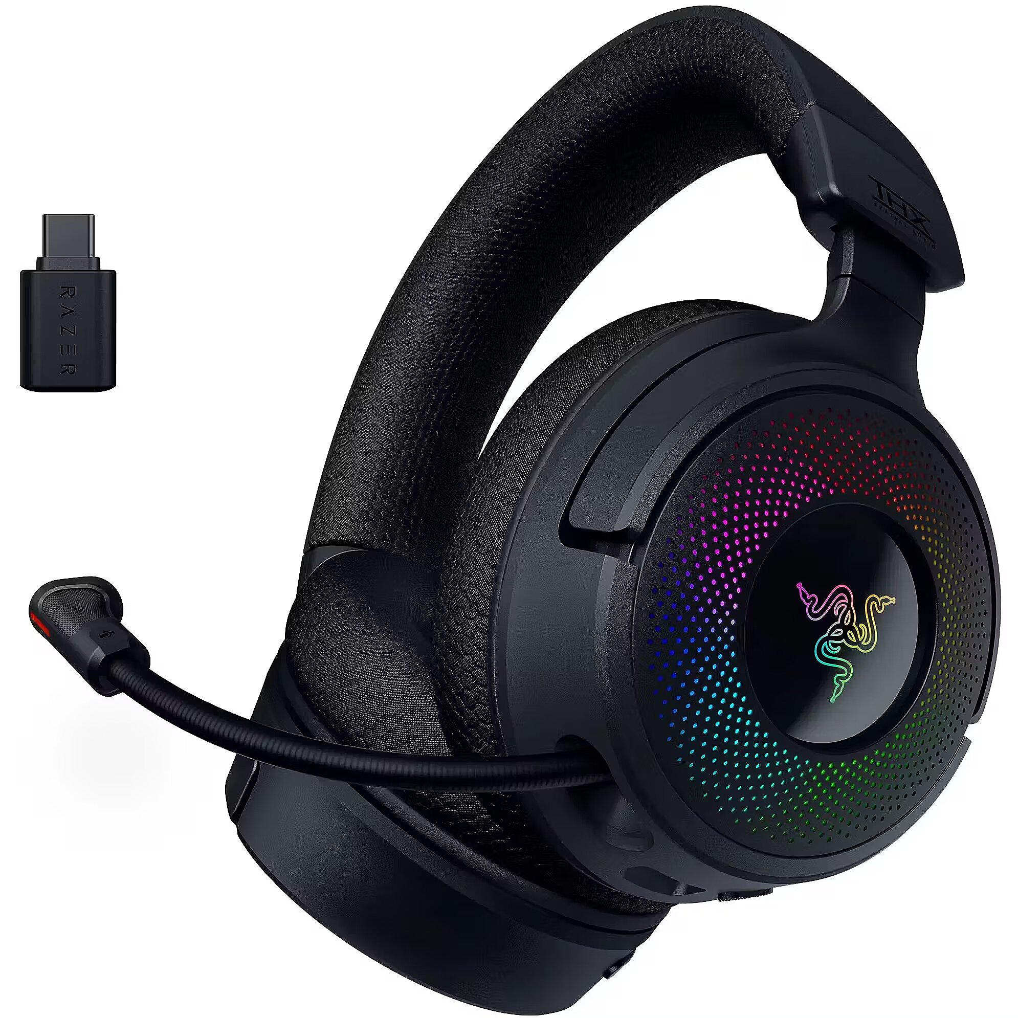 Astu piirideta mängumaailma Razer Kraken V4 kõrvaklappidega – juhtmevaba peakomplekt, mis pakub kolme ühendusrežiimi, peidetavat mikrofoni ja üheksatsoonilist RGB valgustust. 3 ühendusrežiimi