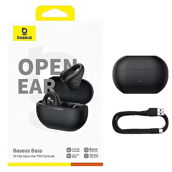 Baseus Bass 15 Clip Open Ear Headset True Wireless Stereo (TWS) In-ear Calls/Music Bluetooth Black
