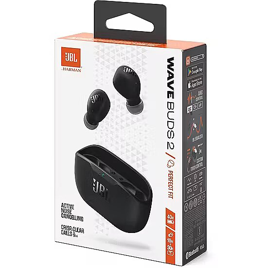 LongDesc - Life’s too short for boring.Quality sound just got easier—and more fun. JBL Wave Buds 2 earbuds feature exciting JBL Pure Bass Sound, plus Active Noise Cancelling and Smart Ambient technology so you decide how much of the outside world you want to hear. Manage hands-free crisp, clear calls with justa tap on the earbuds. Use the JBL Headphones app to customize your sound and Voice Prompts language. Connect seamlessly with up to 8 Bluetooth® devices and switch effortlessly from one to another. And with up to 40 hours* of playback time, they’re a great everyday sound companion. (*with ANC off)
