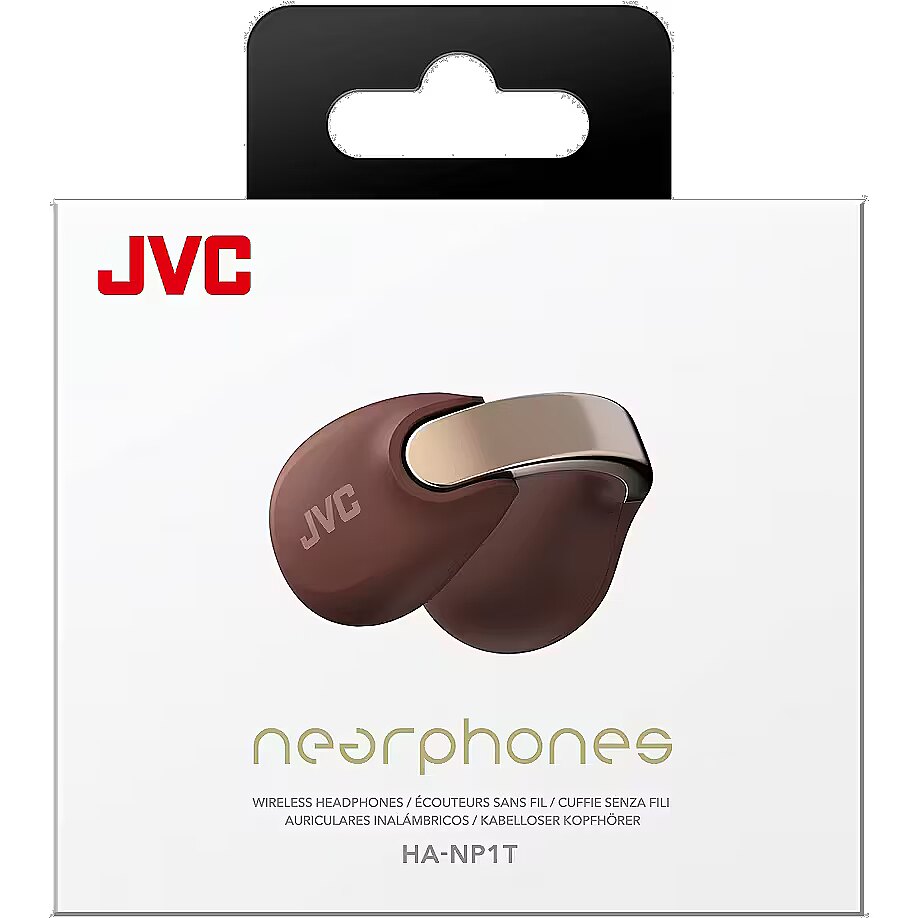 LongSummaryDescription - JVC HA-NP1T. Product type: Headset. Connectivity technology: True Wireless Stereo (TWS), Bluetooth. Recommended usage: Calls/Music. Headphone frequency: 20 - 20000 Hz. Wireless range: 10 m. Weight: 9.7 g. Product colour: Brown, Silver
