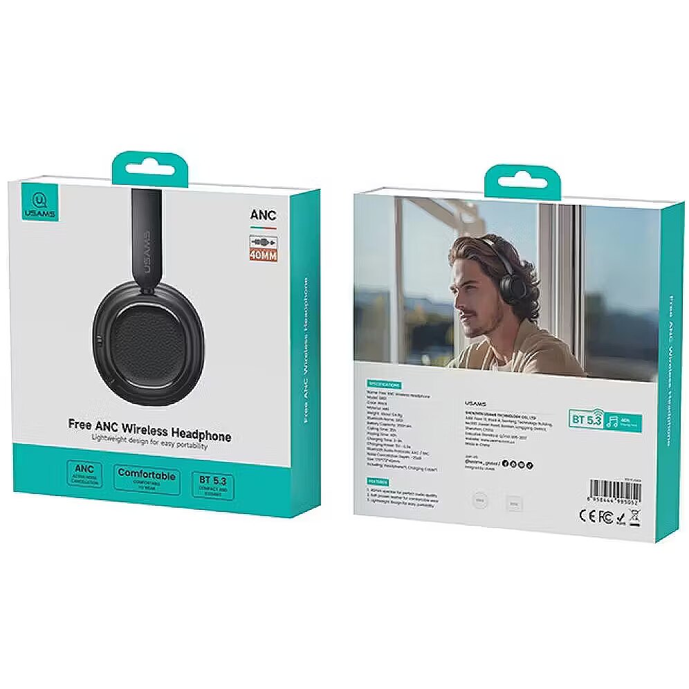 Description - USAMS SR01 Bluetooth 5.3 ANC Over-Ear Headphones The USAMS SR01 Bluetooth 5.3 ANC over-ear headphones in black combine advanced technology with exceptional comfort to meet the expectations of even the most demanding users. Equipped with active noise cancellation (ANC), these headphones effectively eliminate ambient noise, allowing for complete audio immersion, regardless of your location. This makes them ideal for noisy environments, such as public transportation, the office, or other noisy environments. The modern Bluetooth 5.3 standard ensures a fast and stable wireless connection to mobile devices, computers, and TVs. This means you can enjoy uninterrupted audio transmission without having to connect the headphones to your device via a cable. The Bluetooth range allows you to move freely around the room without worrying about signal loss, and low power consumption ensures long-lasting battery life. The built-in microphone ensures clear call quality and also allows you to use voice assistants like Siri and Google Assistant. This allows you to easily manage your calls, control your music, and more with simple voice commands, without having to reach for your phone. The best choice The stylish black color and modern design make these headphones suitable for any outfit and occasion. Whether you're listening to music on your commute or relaxing with your favorite movie at home, the USAMS SR01 headphones are an excellent choice, combining high-quality sound, comfort, and elegant design. These are reliable headphones for those looking for headphones that offer not only great sound but also functionality and aesthetics all in one.