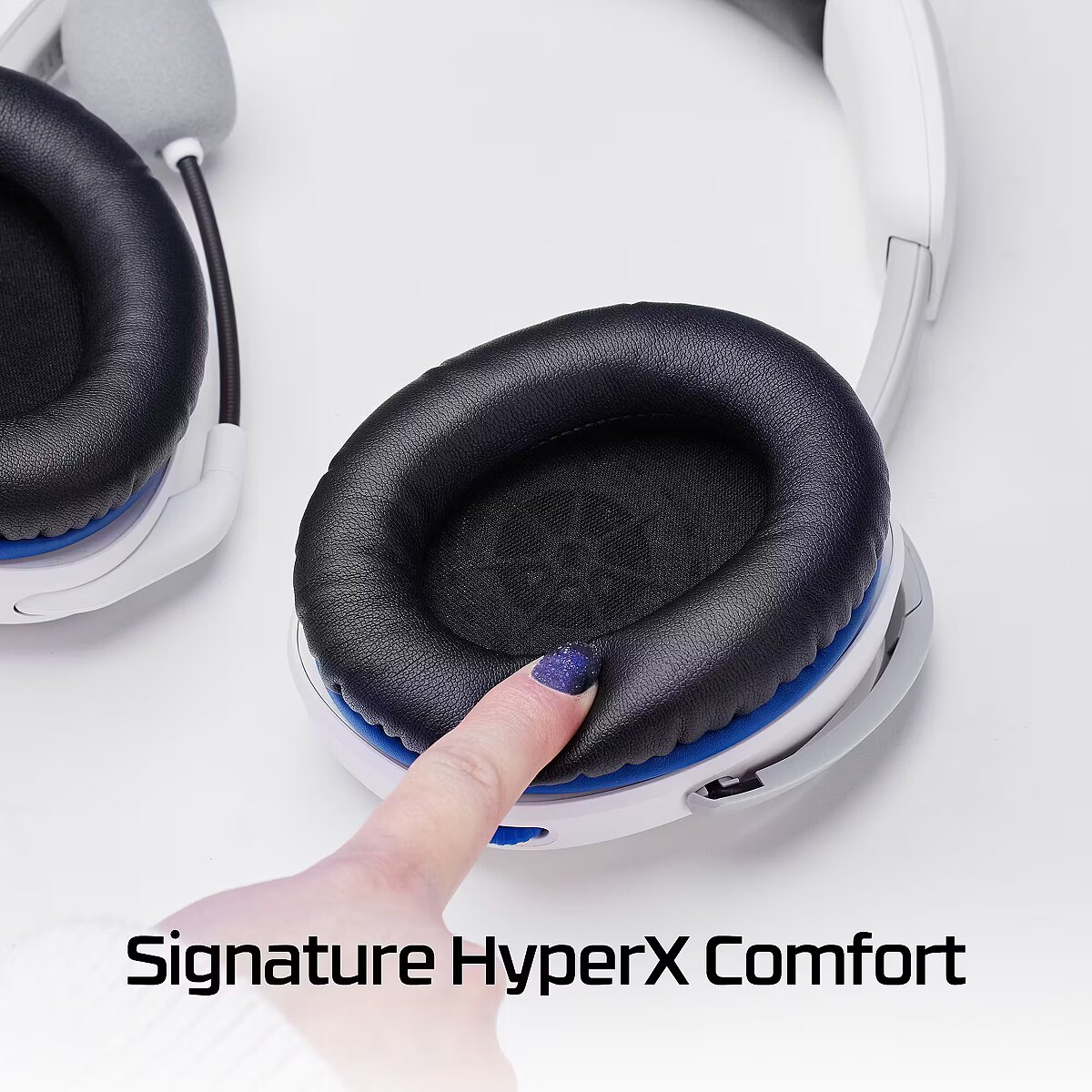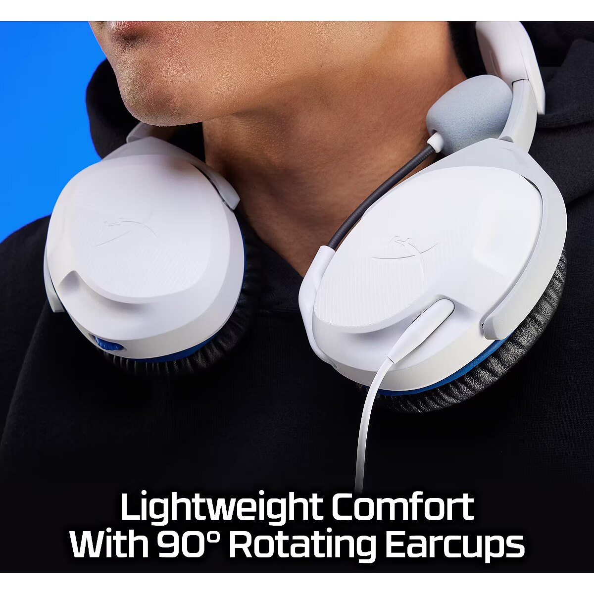 LongDesc - Comfortable, Lightweight Gaming Audio Refined.The HyperX Cloud Stinger 2 is designed for PlayStation players who value lightweight comfort. The Cloud Stinger 2 keeps the fundamentals of the Cloud Stinger and refines them into a worthy successor. Still weighing in at under 300g, it’s lightweight, but also still packs a hefty audio punch. Enjoy a wide frequency response that allows you to detect the important audio cues that’ll give your opponents away. It features soft memory foam and premium leatherette designed for all-day gaming. Gamers will appreciate HyperX’s passion for its craft, which shows up in quality-of-life features like 90° rotating earcups that make it easy to take a break, or the swivel-to-mute microphone that makes muting your mic simple and obvious. Its swivel-to-mute mic and volume controls are located on the headset, grouping all the most important audio functions right on your head for easy access. The passively noise-cancelling microphone is flexible, so you can precisely position it to give you clear communication with your team.