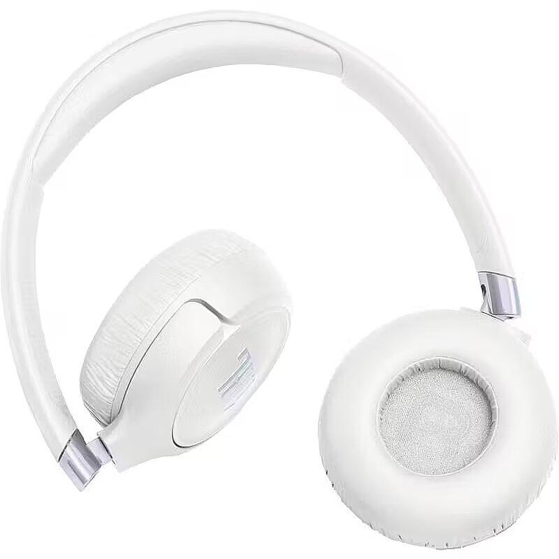 Your music takes center stage with JBL Tune 680NC wireless headphones. JBL Pure Bass Sound and immersive Spatial Sound surround you with crisp, powerful music, while Adaptive Noise Cancelling keeps you free from distractions. The sleek on-ear design with subtle metal accents makes a statement in your choice of stylish colors. Up to 76 hours of battery life means you can go a week between charges. And if you do need a top-up, 5 minutes gets you another 5 hours, or just plug in the detachable headphone cable to stay in the groove. With 2 mics that accurately pick-up your voice, calls sound perfect on both ends. Seamless Bluetooth® switching makes it easy to stay connected across devices, while the JBL Headphones app lets you tailor the sound of your music and crystal-clear calls with ease. They’re lightweight enough to wear all day, and foldable so they slip easily into any bag when the music’s over. From morning podcasts to all-night playlists, JBL Tune 680NC headphones are built to keep up and stand out. Hi-Res JBL Pure Bass Sound plus Spatial Sound