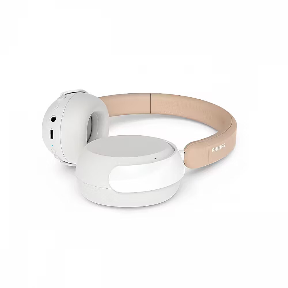 LongDesc - Designed for young ears. Volume limits for home and travelThese headphones have a comfy over-ear fit that helps passively reduce surrounding noise, and a volume limit of 75 dB that's perfect for listening in quieter environments. For noisier locations, noise cancelling can be turned on via the headphones or the Philips Headphones app—and parents can set an 85 dB travel mode in the app.Adaptive noise cancellation for safe listening anywhereAdaptive Noise Cancelling automatically adjusts to surroundings so that kids can focus quietly—or hear their sounds in noisy places without asking to turn up the volume! Earcup controls activate Awareness Mode so they can hear what's happening around them, and Quick Awareness enhances voices so they can hear you while wearing the headphones.Wireless audio sharing doubles the funIf your kid's friends also have a pair of Philips K5500 headphones, they can create a wireless daisy chain between the headphones and listen to the same audio. One pair of headphones is connected to the smart device they want to listen from, and then both friends need to press the multi-function button to enter audio-sharing mode.Foldable design with kid-friendly comfort and controlsBig round control buttons on the earcups make these headphones simple to use, while soft earcup cushions make them comfortable to wear. The cushioned headband adjusts for the perfect fit and dots on the back show which way around to put the headphones on. They can be folded flat, or flat and inwards, for easy storage when not in use.Clear calls with friends and familyA built-in microphone lets kids take calls with family and friends. A dedicated mic picks up the sound of their voice, while a noise-reduction algorithm quietens some of the background noise from the world around them.Long battery life and easy connectionsYou get up to 60 hours of play time (34 with noise cancelling on) from a full charge, and a quick 15 minute charge allows for 10 hours—plus there's a 3.5 mm audio jack for wired listening. A dedicated BT button makes it easy for kids to pair with their devices, and multipoint connectivity lets them connect to more than one device at once.Philips Headphones app with parental controlsOur companion app can be used to set play time limits, so that kids don't listen for too long. Or use the app to switch these headphones from their default setting where volume is limited to 75 dB to a travel mode that limits volume to 85 dB.Warm, natural sound. Philips sound signatureFrom films to music, they'll love what they hear! These over-ear kids' headphones feature large 40 mm drivers tuned to the Philips sound signature. Whatever they're into, they'll enjoy a warm, natural sound with deep bass.Responsible, durable design. Plastic-free packagingMade from tough and durable non-toxic materials, these headphones are built for daily use by kids. Recycled materials are used in the headphones, and our plastic-free packaging uses FSC-certified recycled cardboard and soy-based ink.