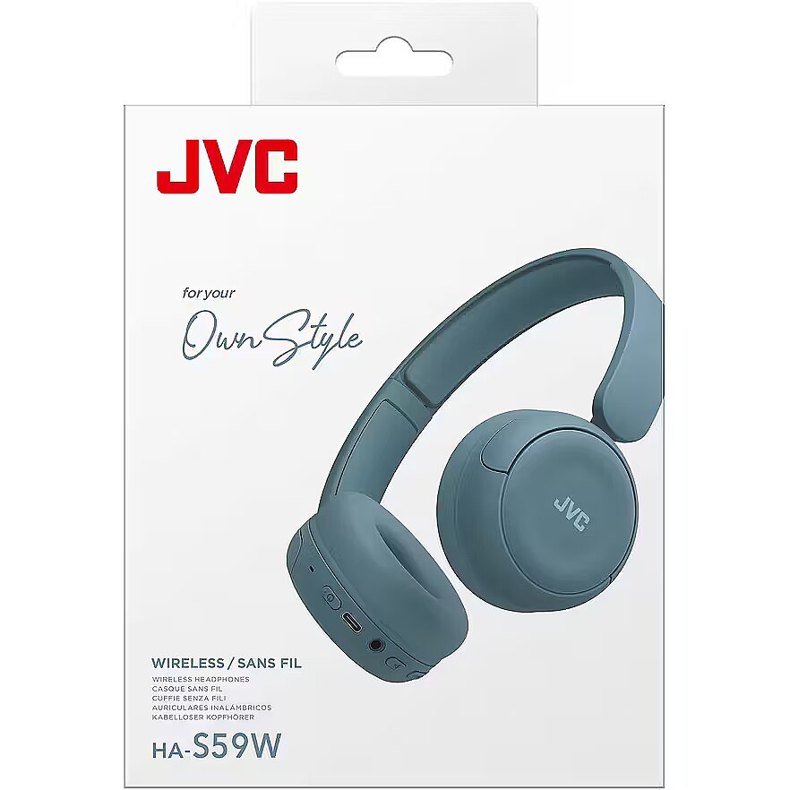 LongSummaryDescription - JVC HA-S59W. Product type: Headset. Connectivity technology: Wired & Wireless, Bluetooth. Recommended usage: Music/Everyday. Headphone frequency: 20 - 20000 Hz. Cable length: 1.2 m. Weight: 148 g. Product colour: Blue
