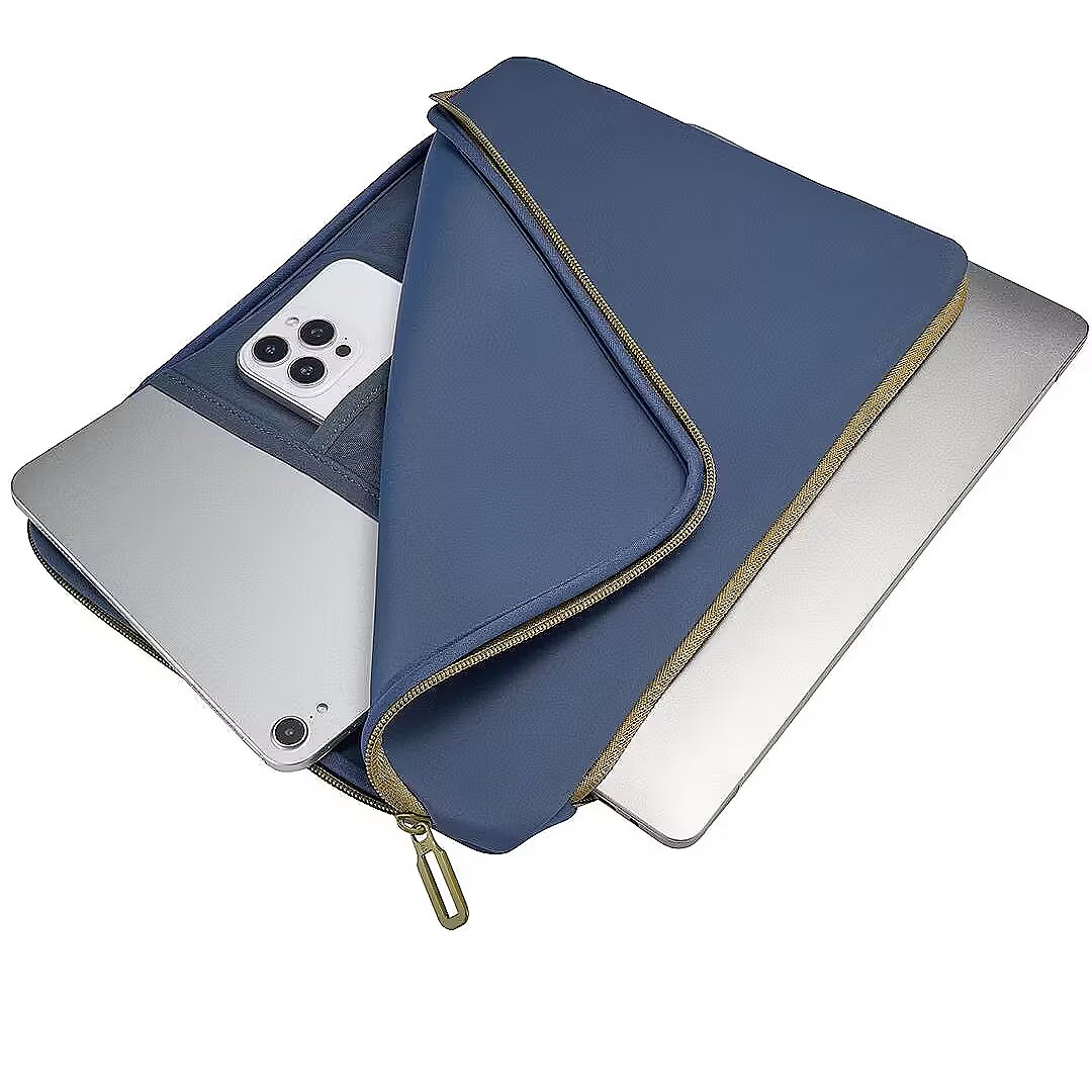 MediumDescription EN - The Doppio laptop and MacBook sleeve offers reliable everyday protection with a practical and minimalist design. Made from 4 mm thick neoprene with partially recycled plastic content, it features two compartments for your device and accessories, along with an Anti-Slip-System band and non-slip corner flaps to keep your laptop securely in place. • Made with material partially produced from recycled plastic• 4 mm thick neoprene for impact and scratch protection• Two compartments for laptop or tablet and accessories• Anti-Slip-System band to secure the laptop• Non-slip corner flaps for added stability
