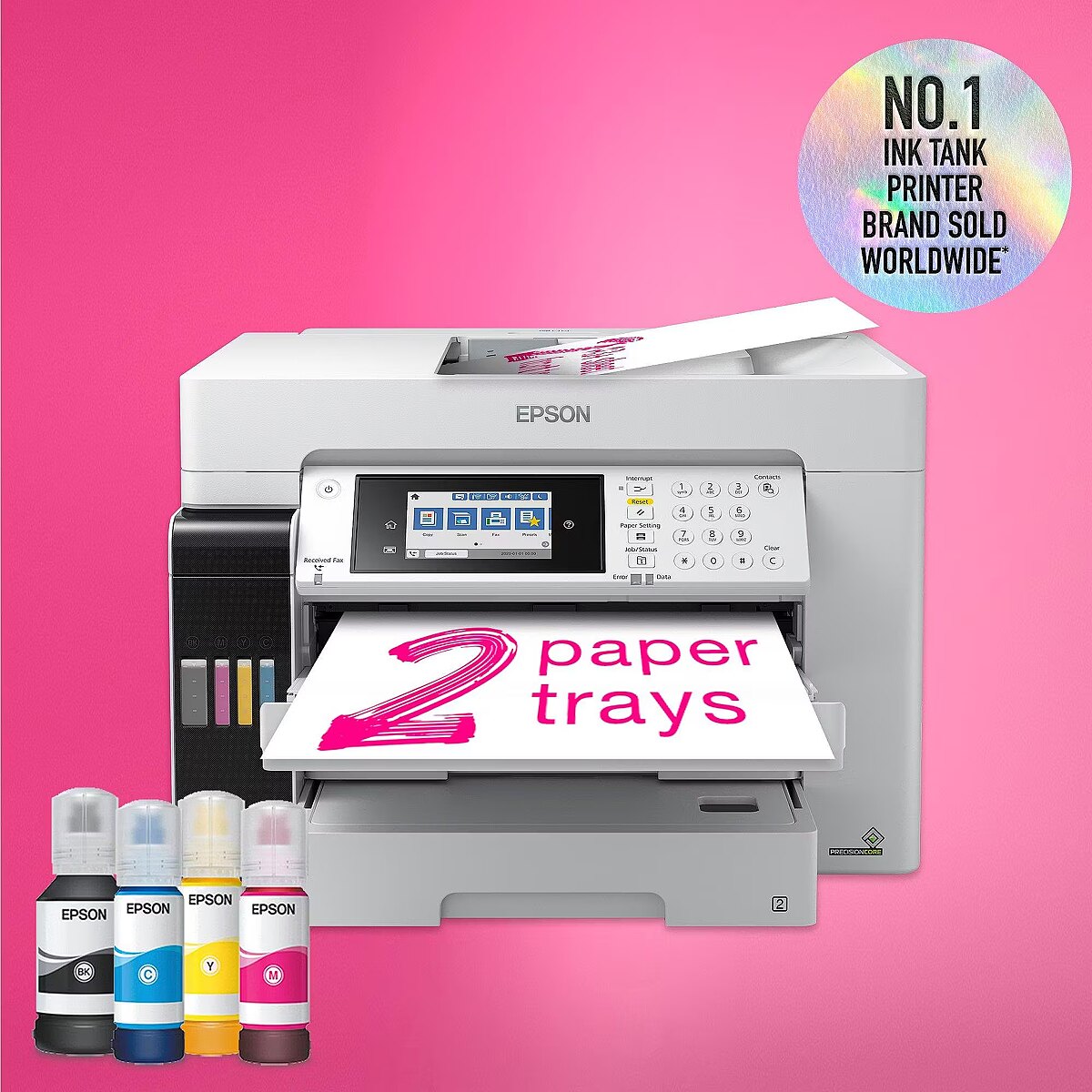 LongDesc - High performance printingA3+ print, scan, copy and fax with this fast, feature-rich EcoTank. It offers a low cost per page, 550-sheet tray capacity and 50-sheet ADF.This feature-rich EcoTank makes light of A3+ tasks, while offering a low cost per page. A3+ jobs can be accomplished quickly thanks to fast print and scan speeds, two 250-sheet front trays, a 50-sheet rear feed, and a 50-sheet A3 ADF. Print how you like with mobile printing, Ethernet and a 10.9cm LCD touchscreen with hard keys.Get more done in less timeGet the edge with this fast and efficient printer that can deliver a first page in as little as 5½ seconds. Coupled with fast double-sided printing, and a high speed Automatic Document Feeder, you’ll be able to speed through everyday tasks.Feature-rich A3 EcoTankThe ET-16650 is designed for A3 tasks with A3+ print, scan, copy and fax. It's easy to navigate the extensive range of features via the 10.9cm LCD touchscreen and hard keys.Keep on savingSave every time you print with this EcoTank that delivers an incredibly low cost per page. Unlike other printers, EcoTank features large ink tanks that you fill with low-cost ink bottles.End interuptionsMinimising refills, this EcoTank can print thousands of pages before needing more ink, while the two A3 paper trays offer a capacity of 500-sheets. Free yourself from manual page loading with a generous 50-sheet rear feed and A3 ADF.Print from almost anywhereIt's easy to print from mobiles, tablets and laptops using EcoTank. With Wi-Fi and Wi-Fi Direct, you can send documents to print from smart devices using the Epson iPrint app.Easy to use and reliableFilling the large front ink tanks is simple with the resealable, intuitive and drip-free ink bottles.The heat- free PrecisionCore printhead is renowned for its speed, quality, reliability and efficiency, and will last the lifetime of the printer.