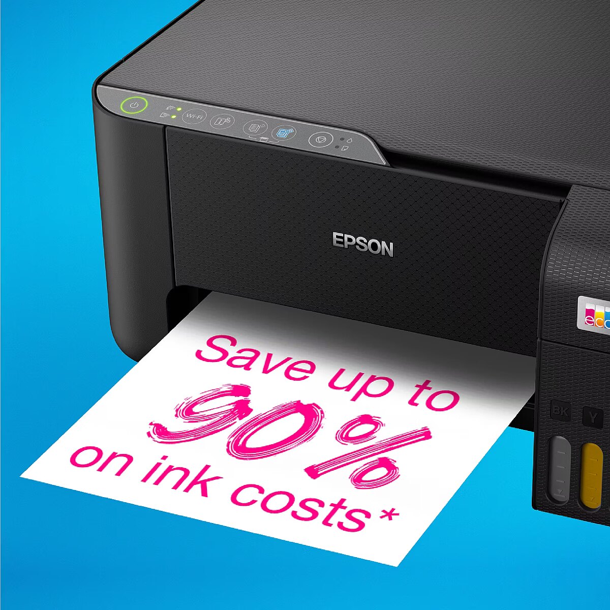 LongDesc - Perfect for anyone looking for low-cost-printing, this A4 inkjet printer has refillable ink tanks, with one set of bottles having the equivalent of up to 72 cartridges*. Additional benefits include mobile printing, Wi-Fi, copy and scan.- Reduce costs by 90%*- Ultra-low-cost printing- Print, copy & scanSave up to 90% on printing costs* with Epson’s cartridge-free EcoTank printers. Supplied with high yield ink bottles, the integrated ink tanks are easy to fill thanks to the specially engineered ink bottles. With no cartridges to replace, and flexible connectivity features, this is the perfect printer for anyone looking for high-quality prints at an incredibly low cost-per-page.Say goodbye to cartridgesEcoTank provides hassle-free home printing - the ultra-high capacity ink tanks allow mess-free refills and the key-lock bottles are designed so only the correct colour can be inserted. The front ink level display means it's easy to see when it’s finally due for a refill.Keep on savingThis economical printer saves you up to 90% on printing costs* and comes with up to 3 years' worth of ink included in the box*. One set of ink bottles delivers up to 4,500 pages in black and white and 7,500 in colour*, equivalent of up to 72 cartridges worth of ink!*Epson Smart Panel appThis app enables you to control your printer from your smart device*. You can print, copy and scan documents and photos, set up, monitor and troubleshoot your printer, all from your phone or tablet.Packed with featuresFeaturing a 100-sheet rear paper tray, borderless photo printing (up to 10x15cm) and print speeds of up to 10 pages per minute*, you can speed through a variety of tasks with ease.Modern flexibilityFeaturing a compact design and Wi-Fi and Wi-Fi Direct connectivity, you can easily integrate this printer with your existing home set-up and print from mobiles, tablets and laptops*.Built to lastHeat-Free Printing Technology means the printhead will last the lifetime of the printer so you can benefit from no unnecessary replacement parts or upgrades, as well as reduced power consumption. It is also engineered to prevent nozzle clogging.