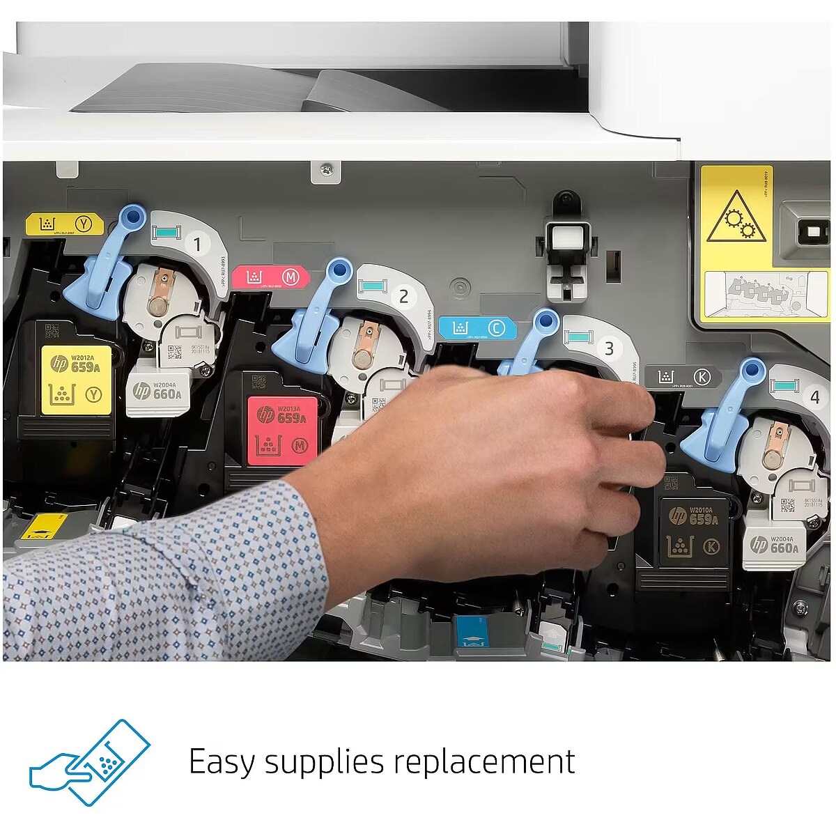 Features - Replacement cartridges - W2010A HP 659A Black LaserJet Toner Cartridge (16,000 pages); W2011A HP 659A Cyan LaserJet Toner Cartridge (13,000 pages); W2012A HP 659A Yellow LaserJet Toner Cartridge (13,000 pages); W2013A HP 659A Magenta LaserJet Toner Cartridge (13,000 pages); W2010X HP 659X Black LaserJet Toner Cartridge (34,000 pages); W2011X HP 659X Cyan LaserJet Toner Cartridge (29,000 pages); W2012X HP 659X Yellow LaserJet Toner Cartridge (29,000 pages); W2013X HP 659X Magenta LaserJet Toner Cartridge (29,000 pages); W2004A HP 660A Original LaserJet Imaging Drum (65,000 pages, universal for all 4 colours)