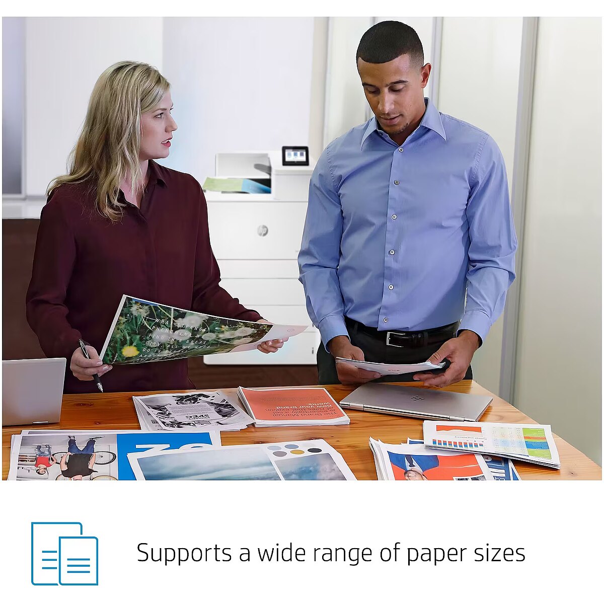 LongDesc - Print phenomenal colour while maximising uptime – now with original HP JetIntelligence toner technology. Expect consistently fast output, brilliant prints, and the world’s strongest security.[1]Dynamic security enabled printer Certain HP printers are intended to work only with cartridges that have a new or reused HP chip or electronic circuitry. These printers use dynamic security measures to block cartridges using a non-HP chip or electronic circuitry. Periodic firmware updates will maintain the effectiveness of these measures and block cartridges that previously worked. Reused HP chips and electronic circuitry enable the use of reused, remanufactured, and refilled cartridges.
