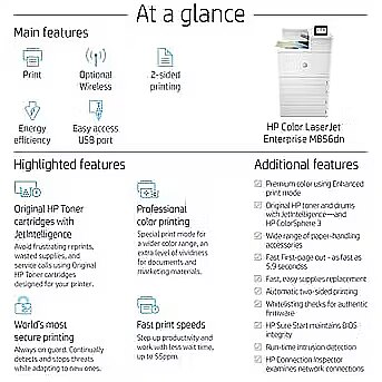 Lühikokkuvõte - HP Color LaserJet Enterprise M856dn, laser, värviline, 1200 x 1200 DPI, A3, 56 lk/min, kahepoolne trükkimine