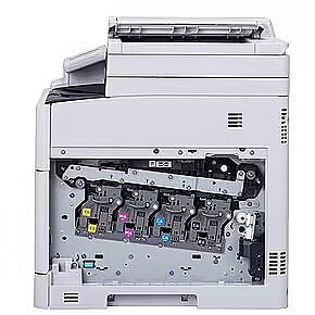 Copier specifications - Format papieru do kopiowania: A4, A5, A6, B5, B6, Letter, Legal 14, Statement, Executive, koperty, format niestandardowy: szerokość 76-216 mm × długość 127-355 mm Skalowanie kopiowania: 25 - 400 % Maksymalna liczba kopii: 99 arkuszy Prędkość kopiowania: A4 32 kopii/min kolor, 32 kopii/min mono Czas wykonania pierwszej kopii: kolor - około 11s, mono - około 6,6 s