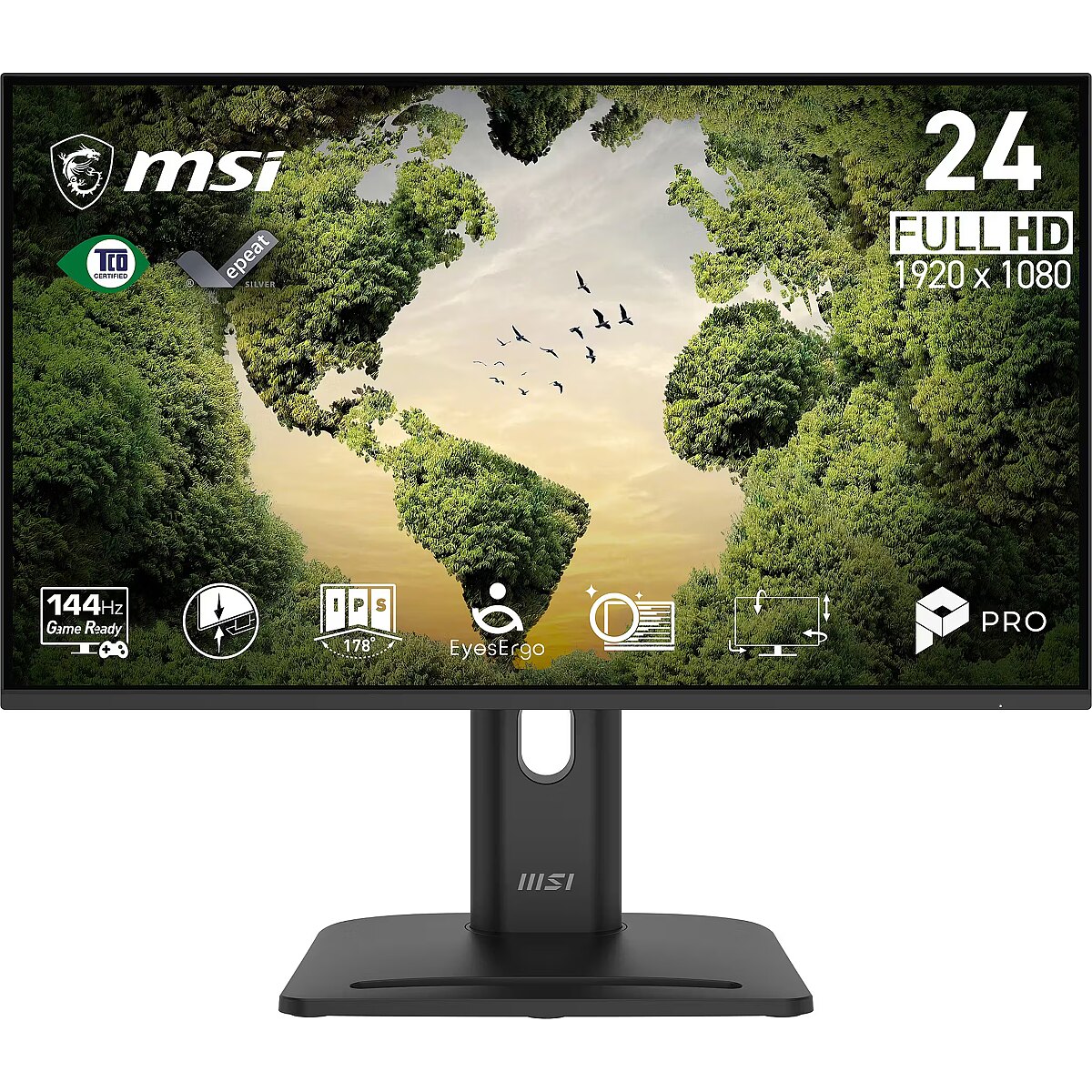 LongDesc - Efficiency by Day,Dominance by NightThe PRO MP245PG E14 monitor combines a 144Hz refresh rate and Adaptive-Sync for smooth gaming and work. Its ergonomic design, PerfectEdge display, and HDR Ready feature enhance comfort and immersion, making it the perfect all-in-one solution.PerfectEdge Provides thePerfect View.The four-side slim bezel design maximizes screen space, minimizing distractions and enhancing focus. Ideal for work or play, it allows seamless multi-monitor setups, creating a clean, expansive, and elegant workspace.144Hz + 1ms MPRT + Adaptive-SyncUnlock the full potential of your monitor with a high refresh rate. From seamless multitasking at work to ultra-smooth gaming and fluid AI-generated visuals, every detail comes to life with precision and speed.Whether you're creating, playing, or innovating — this is performance you can see and feel.Sleek Integration with Mini PC MountableExperience the flexibility of a 4-way adjustable monitor and the convenience of a tidy desk with our mini-PC mountable stand.MSI Power Link SupportThe standard Mini-PC mountable design allows the Cubi Series to be mounted on the stand of the monitor, tidying up the workspace. MSI Power Link with HDMI™ CEC lets the mini-PC be powered on by the monitor's button, enhancing efficiency and user experience.Ergonomics forAll-Day ProductivityWorking in a suitable position not only has a positive impact on job satisfaction and productivity but can also contribute to overall health and well-being. Also, 4-way adjustable stand allows users who need to work in a vertical way properly and efficiently.Experience Stunning Visualswith HDR ReadyHDR Ready technology delivers richer colors, deeper contrast, and vivid details for a lifelike viewing experience. Whether for work, movies, or gaming, it enhances screen performance to new heights.Accessory Slot DesignThe accessory slot offers convenient storage for small peripherals, keeping your workspace organized and clutter-free. Ideal for cables, adapters, or other essentials, it enhances efficiency and maintains a tidy environment.Built-in SpeakersExperience clear, powerful audio with built-in speakers, enhancing your multimedia without cluttering your workspace.Firmware UpdatePRO MP245PG E14 can update the firmware through DP connector, which is simple and easy to use. This allows users to update the firmware on their own at any time when the latest version is released by MSI. This ensures that the screen is always in the best-optimized state.Simplicity At Your Fingertips - Display Kit AppThe MSI exclusive software Display Kit provides the most convenient tool, the proper display that allows you to read and enjoy the image at the same time & color mode to you while working or everyday.Power Saving ProductIt is our responsibility to promote sustainable development and we proudly offer an eco-friendly product, contributing to a greener environment.Sustainable Packing SolutionsReduce the environmental impact with our sustainable solutions.Crafted for the Modern Professional.Inspired by the younger generation's pursuit of simplicity and efficiency, the monitor's back cover features refined engravings. This elegant design symbolizes limitless possibilities, making it the perfect companion for young professionals.