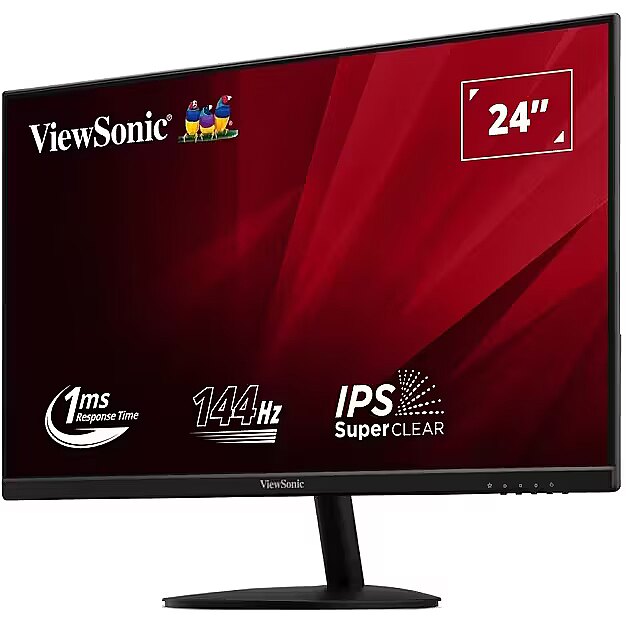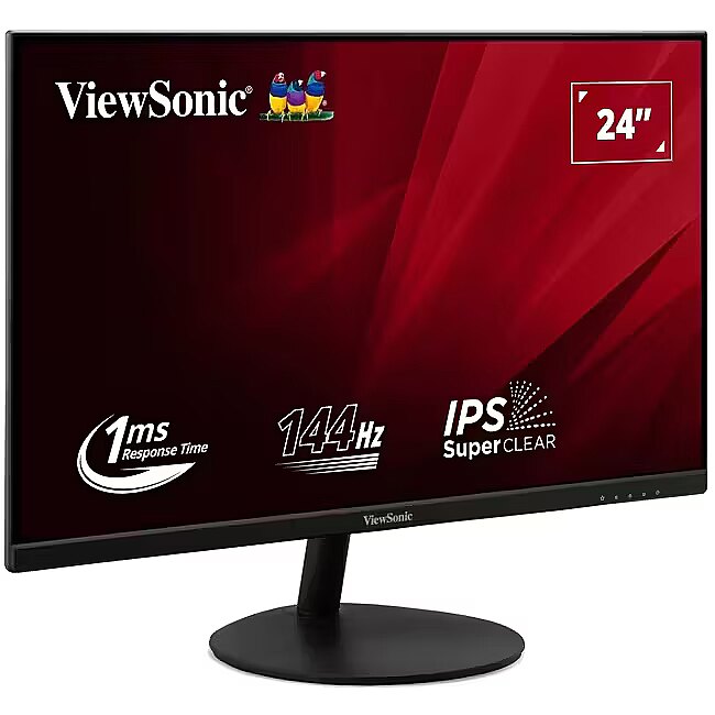 LongDesc - The ViewSonic VA24E2-H is a 24” Full HD monitor featuring HDMI and VGA inputs for business and home use. The optimal screen performance and comfortable viewing without tearing or stuttering are delivered through variable refresh rate, eye-care technology, and various ViewMode presets. Simply expand your workspace and experience truly seamless multitasking on just one screen with a VESA-compatible mount at a low power consumption. Extraordinary Wide-angle VisionEnjoy vivid colors with consistent brightness and amazing accuracy no matter the vantage point. SuperClear® IPS monitor features ultra-wide 178-degree vertical and horizontal viewing angles that deliver Full HD 1080pFull HD 1920x1080 resolution creates unbelievably clear pixel-by-pixel image performance. Experience mind-blowing clarity and detail while working, gaming, or enjoying the latest show premieres.Smooth Visuals With 144Hz Refresh RateWith a fast 144Hz refresh rate, you can experience a truly fluid visual display. This results in improved viewing clarity, reduced screen stutter during fast-moving action scenes, and benefits work-related tasks and gaming experience, reducing eye strain and increasing productivity.React InstantlyExperience better performance and smooth pixel transitions with a fast 1ms (MPRT) response time. React faster in games and work with precision.Industrial Colour StandardA 99% sRGB panel colour coverage capability reproduces richer and more vivid colours, ensuring that images align perfectly with industry colour standards.Borderless Design for Seamless Viewing Break free from bulky bezels with an impressive 3-side borderless screen. Enjoy the sleeker look that delivers clean aesthetic and seamless multi-monitor capabilities.Connection FlexibilityHDMI and VGA inputs give you the freedom to connect your monitor to a wide range of devices.Eye ProTech for Comfort ViewingReduce your eye strain and maintain fresh-feeling eyes with ViewSonic Eye ProTech. The Flicker-Free technology eliminates screen flickering, while the Blue Light Filter minimizes harmful blue light from extended viewing periods, ensuring comfortable screen viewing.Low Energy ConsumptionDesigned with energy efficiency in mind, ViewSonic’s Eco Mode successfully reduces carbon footprint and significantly lowers office overhead costs.Color Rendering OptionsViewSonic’s ViewMode offers “Movie”, “Web”, “Text”, “Mono” and three types of game presets: FPS, RTS, and MOBA. These presets enhance gamma curve, color temperature, contrast, and brightness to deliver an optimized, satisfactory viewing experience for different uses.Dimension & I/O PortsConveniently mount the monitor to your preference by utilizing the 75mm x 75mm VESA-compatible design.