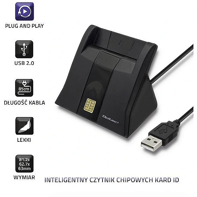Qoltec Smart chip card scanner USB2.0 Plug&play