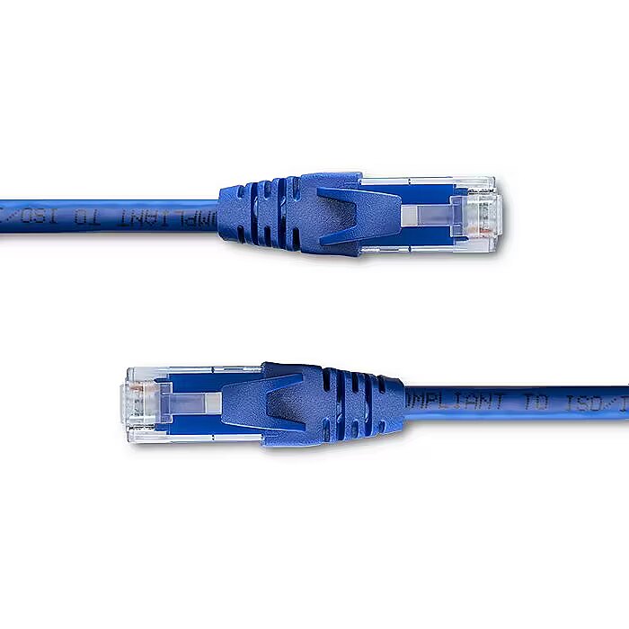 it consists of eight twisted pairs of wires, the cable sheath is made of PVC, each pair of wires is covered with an insulating layer to protect against interference, unshielded - does not have an additional protective screen, at both ends of the cable are RJ-45 connectors - standard modular connector equipped with 8 pins, the ends of the cables are gold-plated for better signal conduction, the ends of the RJ-45 connectors are covered with a plastic shield, which helps protect the ends from mechanical damage and maintains a stable connection, high quality construction confirmed by warranty.