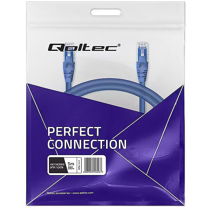 Qoltec's UTP CAT6 cable is a 5m unshielded cable designed to support data transfer speeds of up to 1 Gigabit per second on Ethernet networks. Suitable for high-speed data transfer applications such as file transfer, video streaming, video conferencing requiring high network bandwidth. Particularly used in data communication networks, computer networks, power transmission, data transmission and monitoring systems.