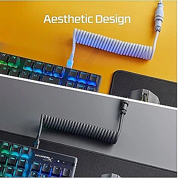 LongDesc - The durable HyperX Coiled Cable comes in a variety of colors so you can express yourself and fine-tune the details of your setup. Don’t just connect your keyboard, get attached to it with 6 vibrant colors to match your style. The tough, dual-layer cable is not only super durable, but the coiled design can also help reduce desk clutter.The durable HyperX Coiled Cable comes in a variety of colors so you can express yourself and fine-tune the details of your setup. Don’t just connect your keyboard, get attached to it with 6 vibrant colors to match your style. The tough, dual-layer cable is not only super durable, but the coiled design can also help reduce desk clutter.Aesthetically appealing coiled cableCompact coil reduces clutterClassic look with a solid connectionDurable dual-sheathed cableCompatible With most USB-C Keyboards