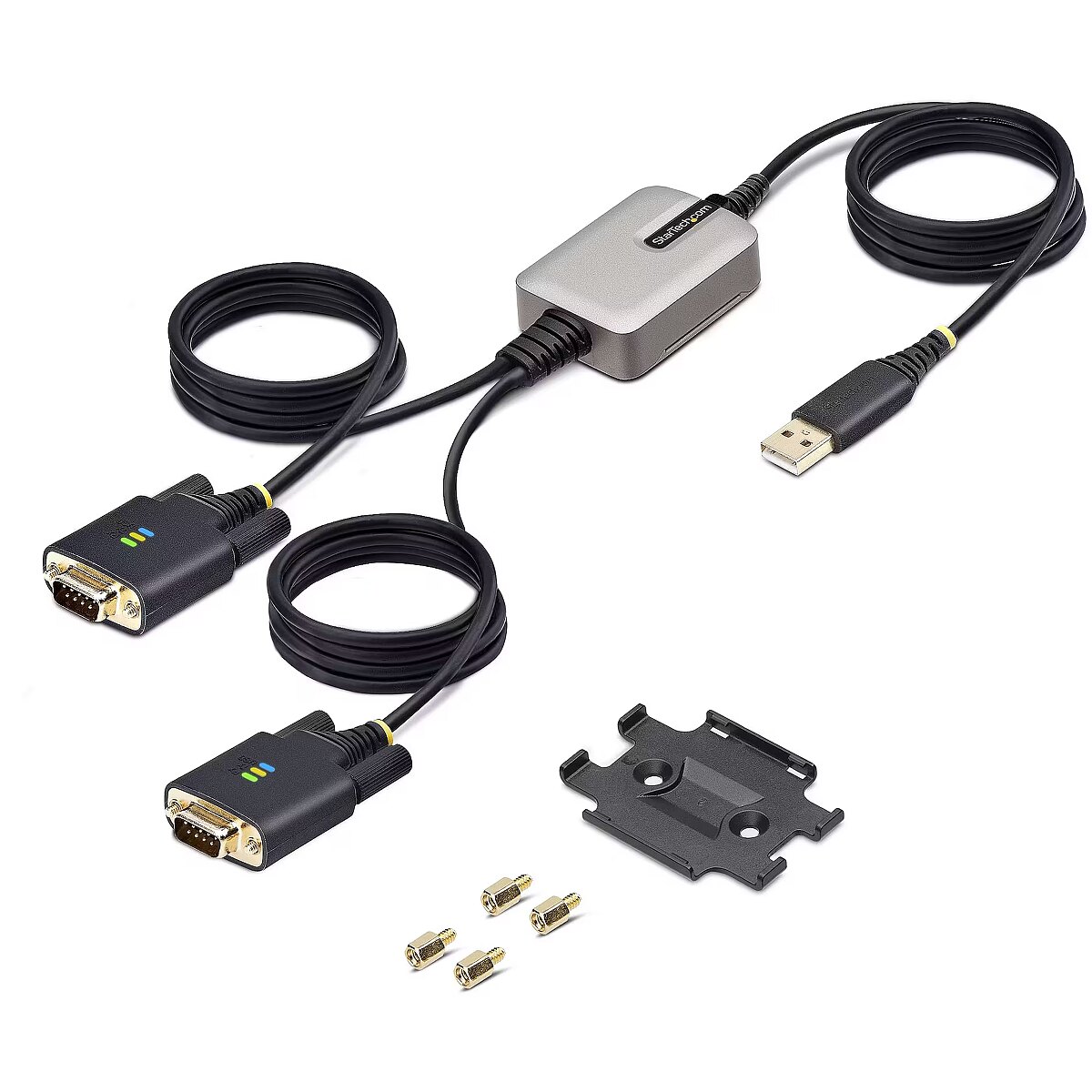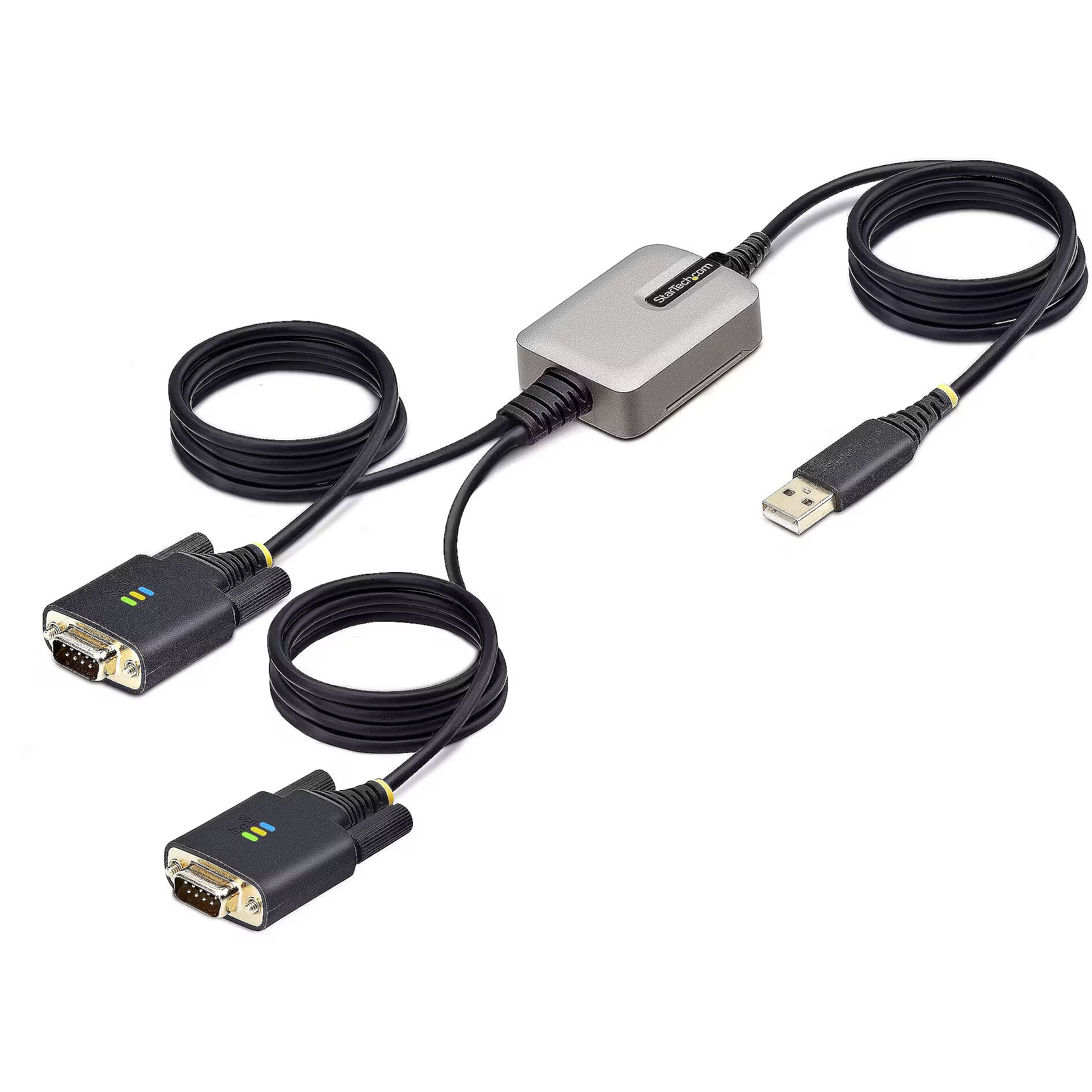 Title - StarTech.com 13ft (4m) 2-Port USB to Serial Adapter Cable, Interchangeable DB9 Screws/Nuts, COM Retention, USB-A to DB9 RS232, FTDI, Level-4 ESD Protection, Windows/macOS/ChromeOS/Linux - Rugged TPE Construction