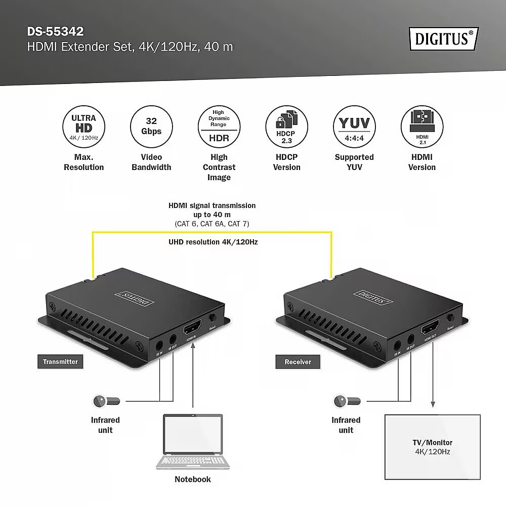 Name - DIGITUS HDMI Extender Set (CAT6,CAT6A,CAT7) 4K/120Hz, 40m