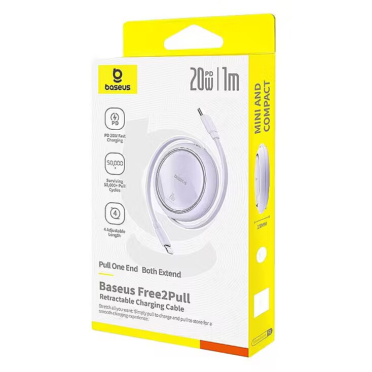 productName - Baseus Free2Pull - 20 W USB-C to Lightning Retractable Cable, 1 m (purple)