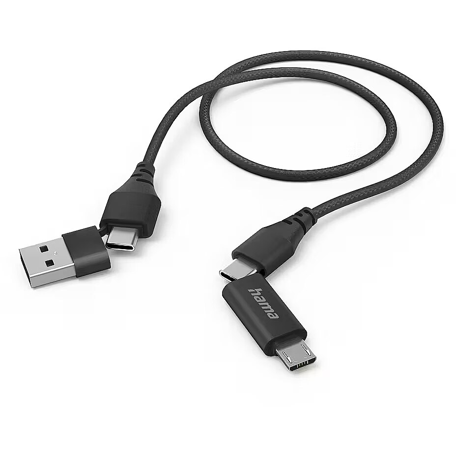 Hama 4-in-1 USB-C/USB-A - USB-C/Micro-USB, 1,5 m, nylon, black - Cable
