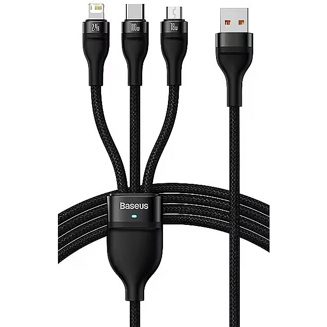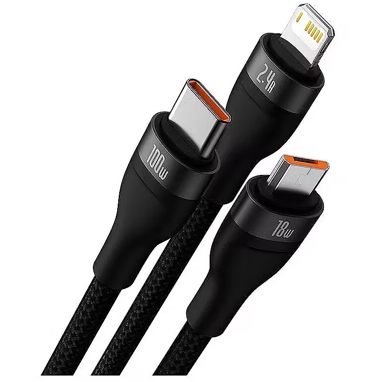 Name - Baseus Flash Series USB 3w1, USB-C + micro USB + Lightning, 100W, 1.2m (czarny)