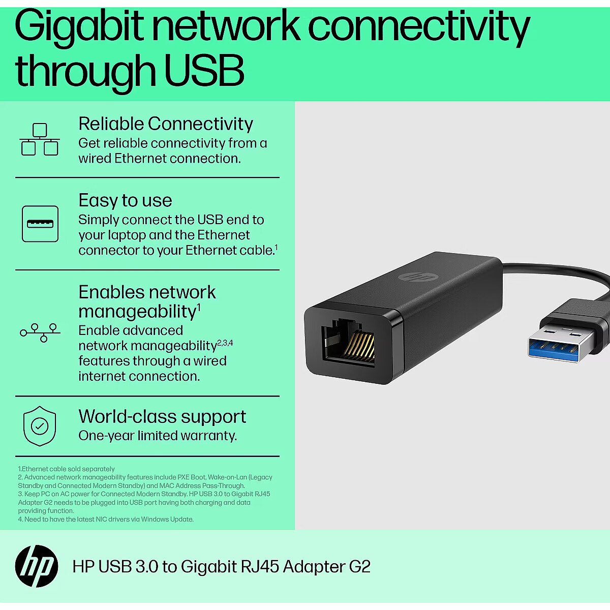 ShortSummaryDescription - HP USB 3.0 to Gigabit RJ45 Adapter G2, Wired, USB, Ethernet, Black