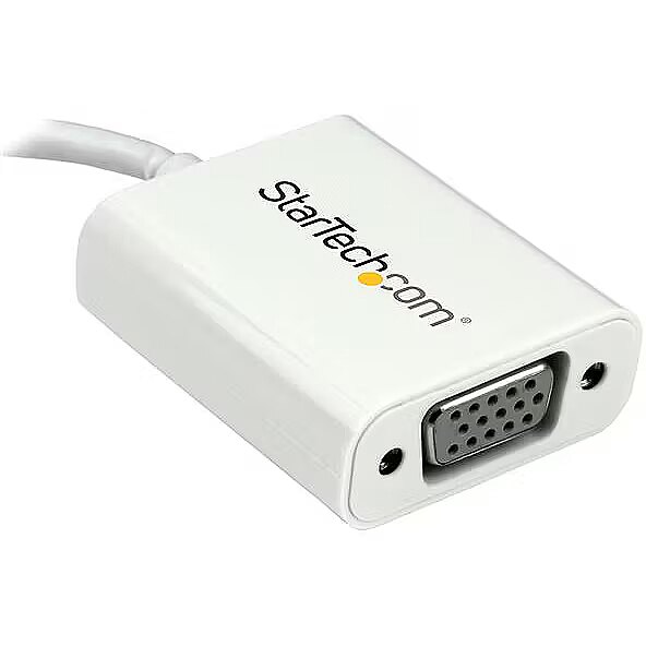 LongDesc - Connect your MacBook, Chromebook or laptop with USB Type-C to a VGA monitor or projectorThis USB-C™ to VGA video adapter lets you output high-definition VGA video from your USB Type-C™ device.USB Type-C is a universal connectivity standard that combines all of your essential functions into one dynamic port. The connector is featured on ultra-portable devices with USB 3.1 Gen 1. This adapter works with USB-C devices that pass a DisplayPort video signal, such as the MacBook and Chromebook Pixel™. It's also compatible with Thunderbolt™ 3 ports.Portable convenienceThis USB Type-C video adapter maximizes portability with a lightweight, small-footprint design. It’s the perfect accessory to carry with your MacBook or Chromebook, because it fits easily into your laptop bag or carrying case. This ultra-portable design makes this adapter perfect for BYOD (Bring Your Own Device) applications at the office.Hassle-free connection with USB Type-CThis adapter lets you take advantage of the versatile USB Type-C port on your portable device. The USB Type-C connector is reversible, so no matter how you plug it in, the adapter will always work, which saves you the hassle and embarrassment of struggling with your device when you're trying to deliver a presentation or collaborate with a colleague.Crystal clear picture qualityThe adapter supports video resolutions up to 1920x1200 or 1080p. You’ll be surprised at the picture quality the adapter provides, even when connected to a legacy VGA monitor, projector or television. The adapter harnesses the video capabilities that are built into your USB Type-C connection, to deliver every detail in stunning high-definition.The CDP2VGAW features a white housing that looks great with your MacBook and is backed by a 3-year StarTech.com warranty and free lifetime technical support.Note: Your USB-C equipped device must support video to work with this adapter. The adapter will not output digitally encrypted content.The StarTech.com Advantage