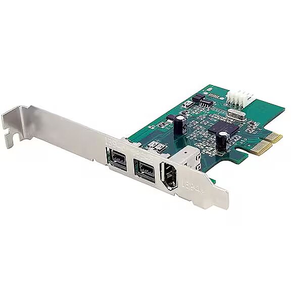 LongDesc - PCI Express to Firewire Adapter | FireWire 400 | Texas Instruments TSB82AA2The PEX1394A2V 2-Port PCI Express FireWire Card lets you add two FireWire 400 ports to your desktop PC. This TAA compliant product adheres to the requirements of the US Federal Trade Agreements Act (TAA), allowing government GSA Schedule purchases.Future ProofAdd FireWire to the latest computers with PCI Express slots. Keep using your legacy devices that would not otherwise be compatible with new computers. This allows you to connect IEEE 1394A FireWire devices such as digital cameras, external hard drives, DV camcorders, printers and moreWide CompatibilityFor broad compatibility, the PCIE firewire adapter is natively supported in Windows® with no additional drivers required. The 2 port PCI Express 1394a Firewire Card comes equipped with a standard profile bracket and includes a low-profile/half-height bracket for installation in small form-factor computers. PCI Express to Firewire adapter is also compatible with macOS 10.10 through 10.13.The Choice of IT Pros Since 1985StarTech.com conducts thorough compatibility and performance testing on all our products to ensure we are meeting or exceeding industry standards and providing high-quality products to IT Professionals. Our local StarTech.com Technical Advisors have broad product expertise and work directly with our StarTech.com Engineers to provide support for our customers both pre and post-sales.PEX1394A2V2 is backed by a StarTech.com 2-year warranty and free, lifetime technical support.The StarTech.com Advantage