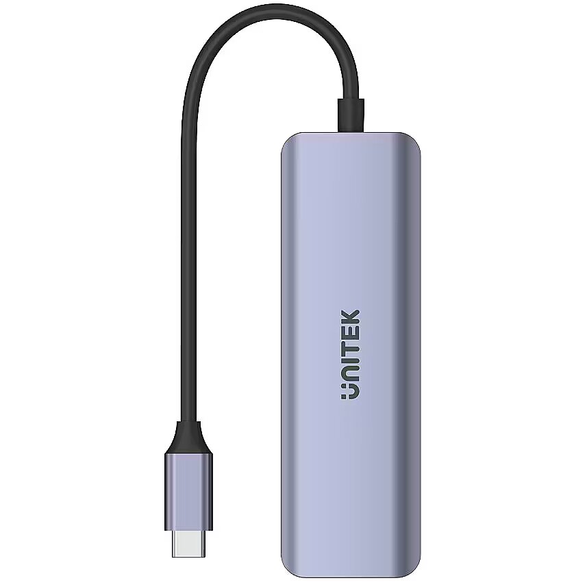 Description - Four in one  Hub 4in1 is a useful addition to modern ultrabooks, where the number of ports is insufficient for our needs. Thanks to it, you can connect up to four additional devices such as a smartphone or a graphic tablet. There are as many as four USB-C ports at your disposal. Fast as lightning The built-in ports operate according to the USB 3.2 Gen1 specification, which means that file transfers with speeds of up to 5Gbps will be faster than making a cup of tea. The hub is also backward compatible with USB 2.0/1.1 and the connection to the device is indicated by an LED indicator. The device is fully Plug&Play, which means that you do not need to install drivers - just plug it in and it works. Elegance and durability Despite as many as four available ports, the hub is also designed with aesthetics in mind. Made of high-quality aluminum, it will dissipate heat well, and the slim shapes and fashionable "Space Gray" color will make the hub visually match modern electronics. Quality guaranteed All Unitek brand products in Poland may be covered by a three-year warranty of the distributor. To activate it, register the purchase via the Unitek Search app (available for iOS and Android).