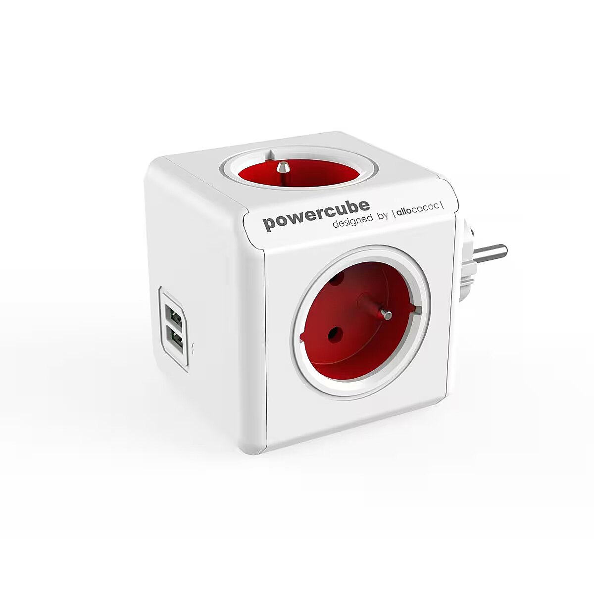 ShortDescription - rozgałęźnik PowerCube Original 4 gniazda 2x USB czerwony