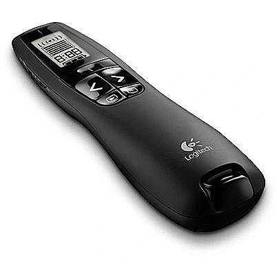 Description - You’ll have powerful control for high-impact presentations with this wireless presenter. Brilliant red laser* pointer Your audience will see exactly where you point. LCD display Keep track of time, battery, and wireless reception with a glance or with silent, vibrating alerts. You remain focused on your presentation, not the clock. Up to 100-foot (30-meter) range You’ll enjoy the freedom to move around the room and mingle with your audience for greater impact. A reception-level indicator ensures you don’t wander too far. Intuitive slideshow controls Buttons are easy to find by touch. And the smooth contours feel great in your hand. You’ll be in control from the first slide to the last. Plug-and-play wireless receiver There’s no software to install. Just plug the receiver into a USB port to begin. And when the show is over, you can store the receiver in the presenter.
