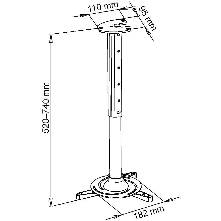 Description - Projector mount with a capacity of up to 15 kg, height adjustment of + 15 to - 15 degrees and 360 progressive horizontal adjustment. The handle has adjustable mounting holes and a system to hide cables.