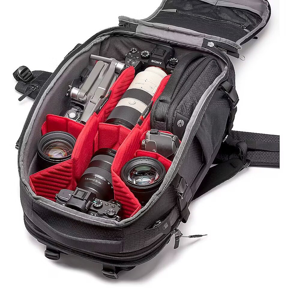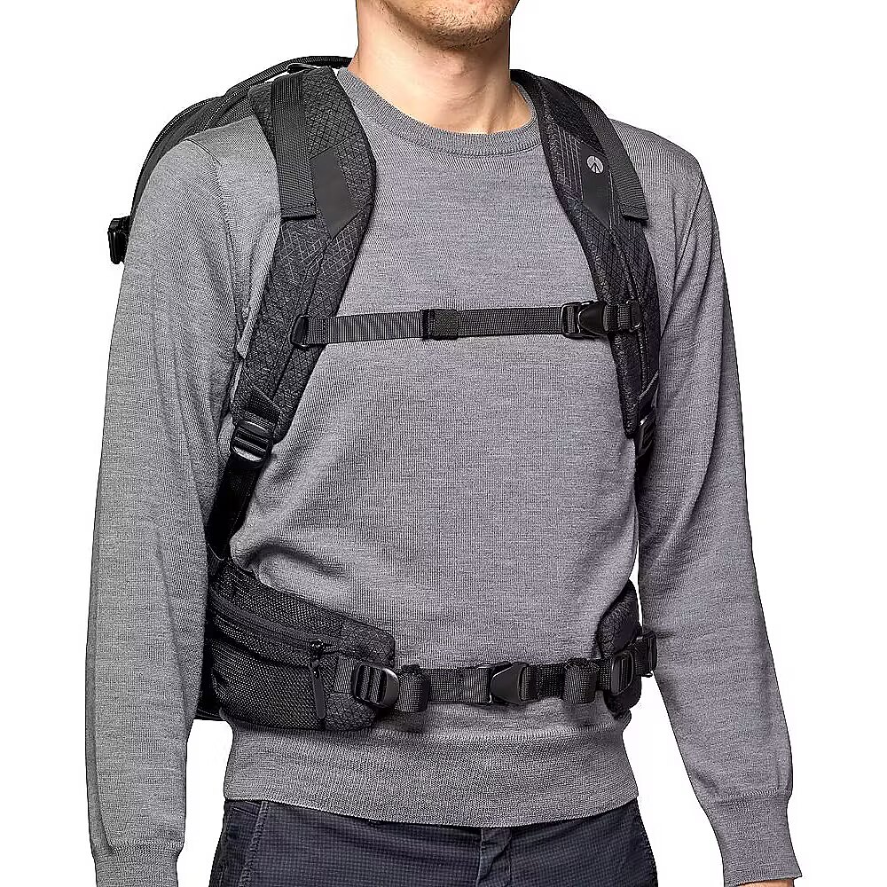 description_en - The Manfrotto PRO Light Flexloader camera backpack L is a professional camera bag specifically designed to provide unparalleled gear protection to fit the preference and workflow of any professional photographer or filmmaker. For professional photographers and filmmakers working on assignments, the camera bag that carry and protect their cameras are equally crucial in making the creative process happen. The PRO Light backpacks usher in the all-new M-Guard™ Protection System specifically designed and laboratory tested to guarantee the highest level of protection and shock resistance especially on areas of the bag where protection is most crucial. M-Guard™ dividers are made of high-density EVA foam that provide exceptional shock absorption while maintaining a super slim profile. In addition the SAS-TEC, a viscoelastic memory foam and multi-impact endurance, adds a structural reinforcement on the base of the backpack provide extra shock absorbing properties. For an even better worry-free experience, a TSA padlock can be used to secure the steel wire puller to close the main compartment. The PRO Light Flexloader L is a backpack that literally expands to cater to your needs created for professional DSLR or mirrorless photo and video gear. It features a full front access to a fully padded gear compartment with customizable interiors, a front organizing compartment in the interior panel with see-trough pockets for small accessories, multiple attachment points for tripods and sliders with extensions and an included accessory organizer pouch. The bag holds professional DSLRs or mirrorless cameras with portrait grip, multiple lenses, foldable drones and more. The rear pocket is an expandable compartment that can be suitable for CSC/VDSLR 3-axis stabilizer gimbals and other accessories. This compartment is entirely separated from the main camera compartment and provides extra space without compromising the main compartment’s capacity. The checkpoint-friendly, designated laptop-only section holds a 15” laptop that is easy to access. This backpack is built to keep professional gear protected while providing optimal comfort even in long periods of carrying. The harness system not only distributes weight evenly from the shoulders to the waist and hips but also maximizes breathability thanks to a contoured EVA mesh panel. The torso length adjustment in 3 levels, load lifters, sternum straps, shoulder straps and waist belt are all fully adjustable in length to give you the utmost flexibility and comfort. The PRO Light Flexloader is made of water-repellant RipStop nylon/polyester fabric with reinforcement yarns to achieve a balance of light weight, unique look, and high capacity performance. The tuck-away tripod strap connection is always ready to secure a variety of professional tripod sizes, sliders and monopod. Duraflex hardware, YKK zippers, hypalon reinforcement, trims and pullers make the pack both ultra-lightweight and strong enough to withstand the most intense use to ensure long-term protection for large amounts of gear. It also conveniently comes with a DuoFace sun/rain cover, which provides extra protection in rough weather and reflects sunlight, keep gear cool and dry all day long. Expandable rear padded pocket for CSC 3-axis gimbal stabilizer Adjustable torso height harness system and pivoting waist belt New M-Guard™ provides the highest level of gear protection Tuck-away strap system to secure multiple pro tripods and stands SAS-TEC structural base reinforcement for extra shock protection
