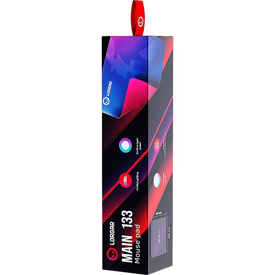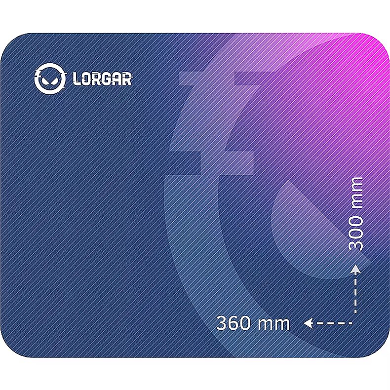ProductDescription - Lorgar Main 133, Gaming mouse pad, High-speed surface, Purple anti-slip rubber base, size: 360mm x 300mm x 3mm, weight 0.2kg