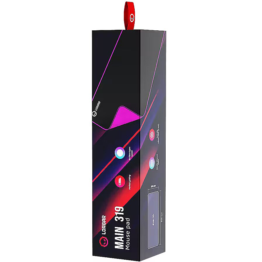 ProductDescription - Lorgar Main 319, Gaming mouse pad, High-speed surface, Purple anti-slip rubber base, size: 900mm x 360mm x 3mm, weight 0.6kg