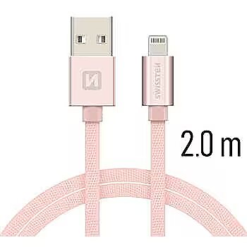 Swissten Textile Fast Charge 3A Lightning (MD818ZM/A) Data and Charging Cable 2m Rose Gold
