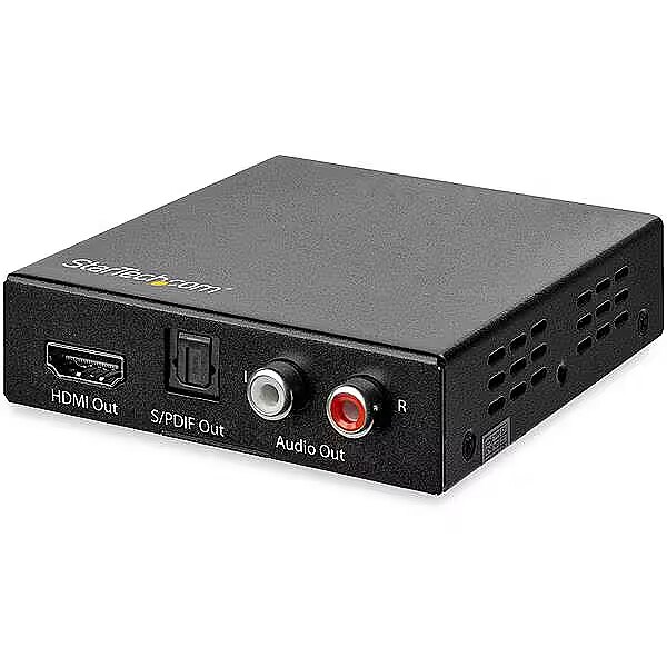 LongDesc - HDMI Audio De-embedder | HDR | Toslink Optical Audio | Dual RCA Audio | HDMI AudioThis 4K HDMI audio extractor lets you de-embed the audio from your HDMI video streams to create a distinct audio output that you can connect directly to a digital or analog audio device. Supporting HDMI 2.0 specifications, the de-embedder maintains 4K 60Hz resolutions to deliver a seamless video experience.4K Video PerformanceThe HDMI sound splitter supports video resolutions up to 4K 60Hz (3840 x 2160) and high video bandwidth up to 18Gbps. It also supports High Dynamic Range (HDR) video pass-through, letting you enjoy lifelike images with incredible contrast, brightness and color, and greater luminosity compared to standard digital imaging.Maximum CompatibilityEasily integrate HDMI 2.0 devices, such as your new 4K Blu-ray player, with your existing audio equipment or desktop speakers. The extractor isolates and extracts the audio signal from your HDMI cable and lets you output to digital optical audio or dual RCA audio devices . The integrated EDID management capabilities support 2-channel, 5.1-channel and pass-through audio modes.\The HDCP compliant HDMI audio de-embedder is compatible with dual-RCA composite adapters, giving you the flexibility to integrate the audio from your HDMI source into 3.5 mm audio applications using MU6MMRCA, MU3MMRCA or MUFMRCA (sold separately).The compact extractor features a small footprint that blends discreetly into your hardware setup, for a uniform look.HD202A is backed by a 2-year StarTech.com warranty and free lifetime technical support.The StarTech.com Advantage- Separate and send the audio from a 4K HDMI video signal to dedicated audio devices- Supports the latest HDMI 2.0 specifications and HDR video pass-through- Hassle-free connection with digital optical audio or Dual RCA audio devices