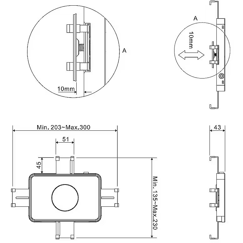 Dimensions W x D x H, mm - 203 x 135 x 43