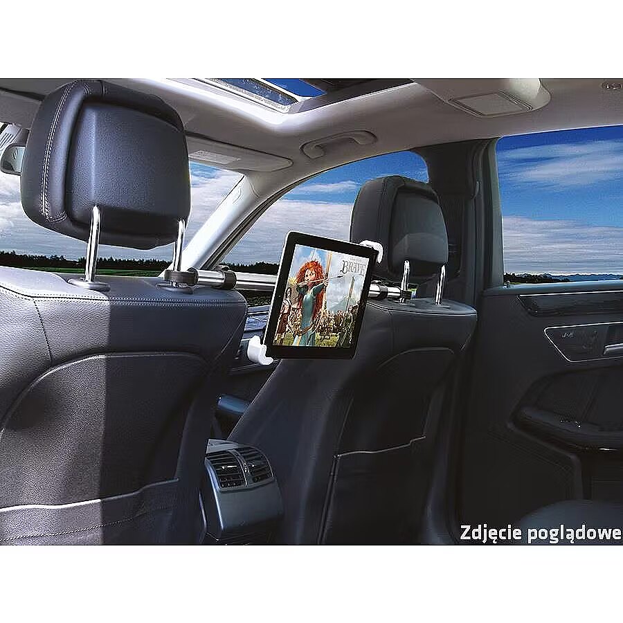 Universal tablet mount car mount between seats to head restraints in the driver and passenger seat. Adjustable arm length allows you to mount the handle virtually in any car. Universal dimensions allow you to attach practically any device in sizes from 7-10.1 ".