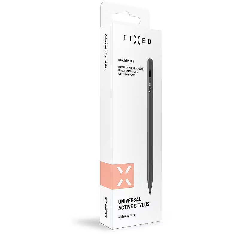 Technical details > Other features - The FIXED Graphite Uni active stylus is a smart accessory for writing, drawing and other work on your tablet or other touch device; It is designed to work with all devices with a capacitive display - tablets, notebooks, smartphones, etc.; To activate the stylus, just gently tap on its upper part and it is ready to use, no complicated pairing via Bluetooth is required; After the work is finished, it turns itself off after 5 minutes of inactivity, thus saving the battery