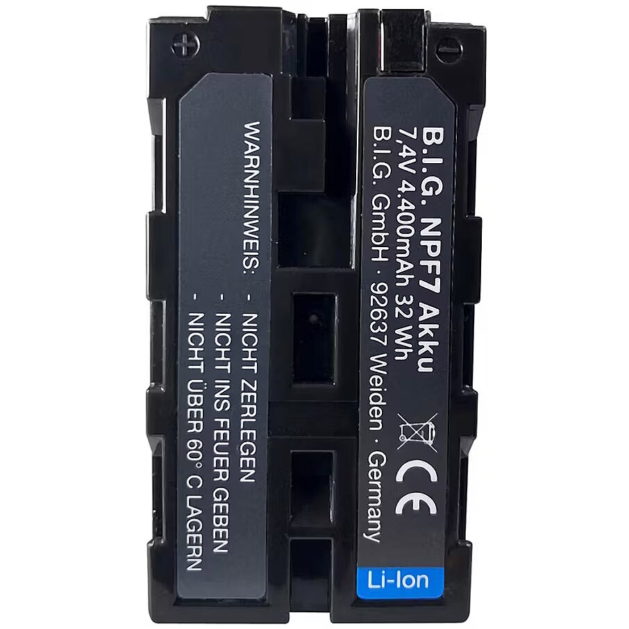 description_en - The BIG battery has the same compact dimensions as the Sony original battery NP-F750 and, thanks to high-quality lithium-ion cells, impresses with maximum performance. It is compatible with studio and video lights that accept Sony NP-F type batteries.