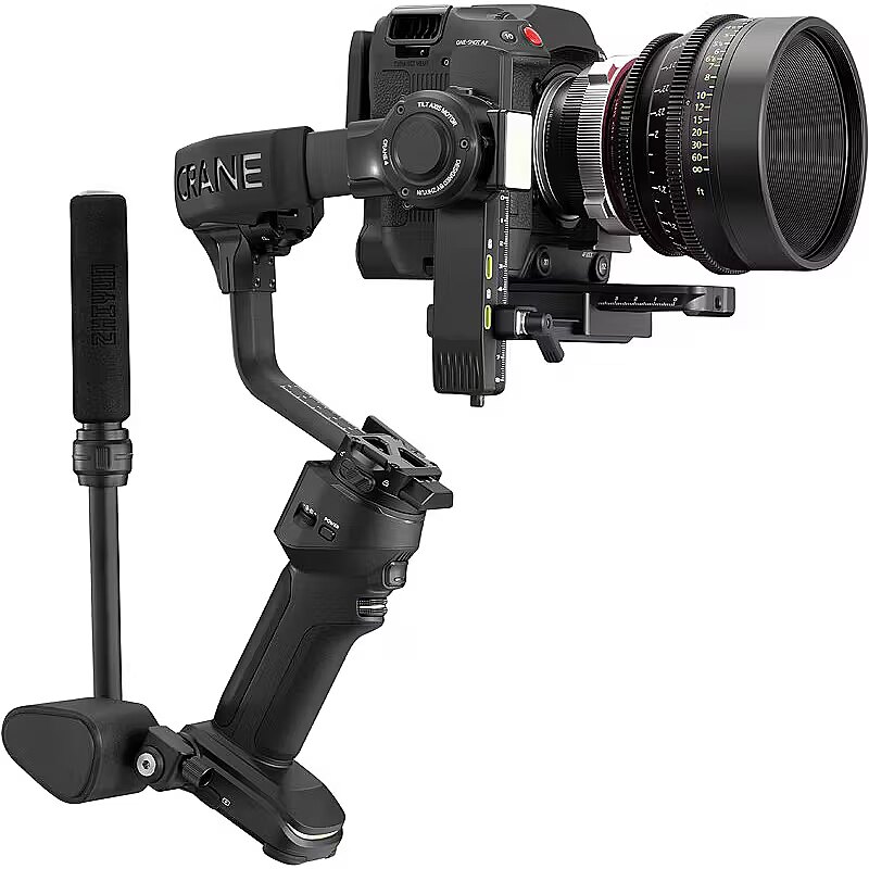The adjustable handle extension and an ergonomic wrist rest included in the Crane 4 Combo kit allows for ultra-precise movement control. The grip can be adjusted to match the gimbal's center of gravity, so you can more easily move from two-handed holding to low shooting angles. Advanced design