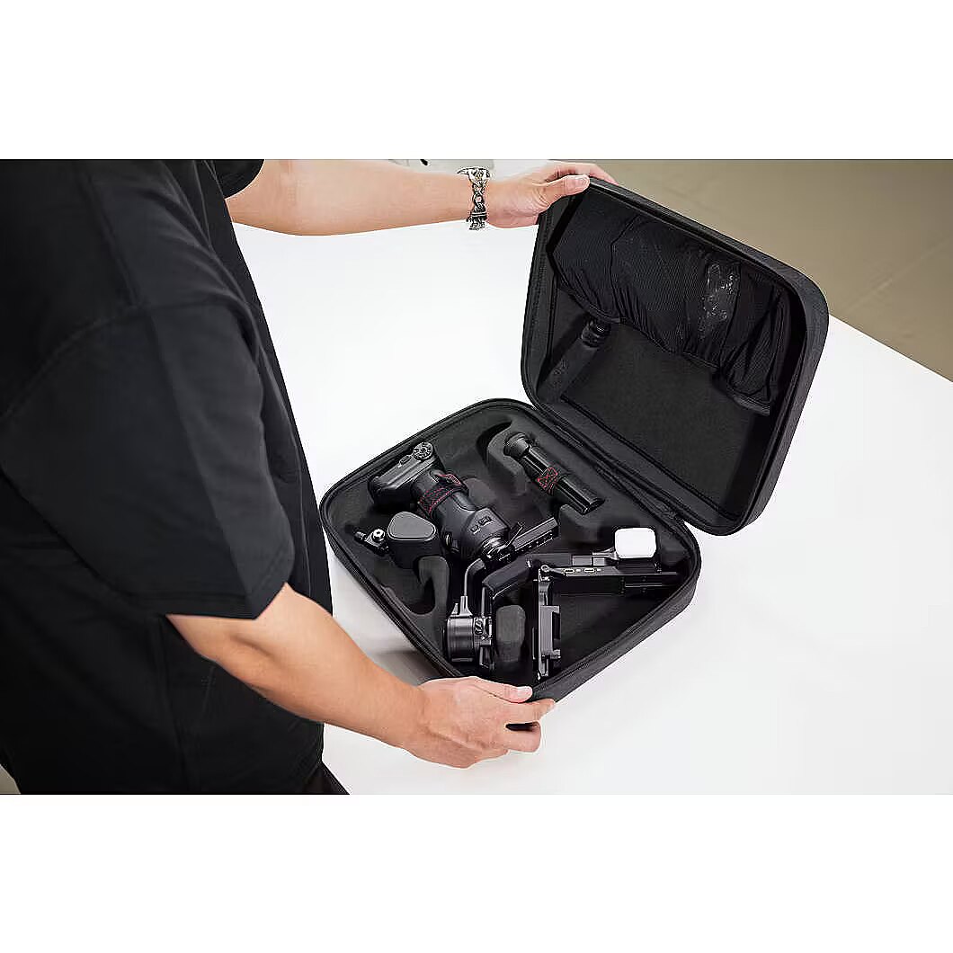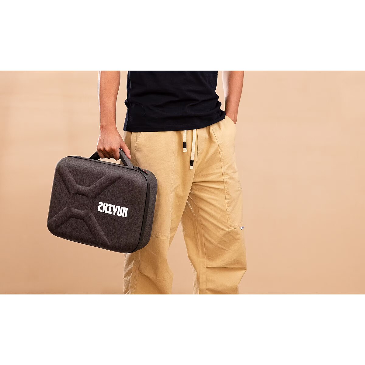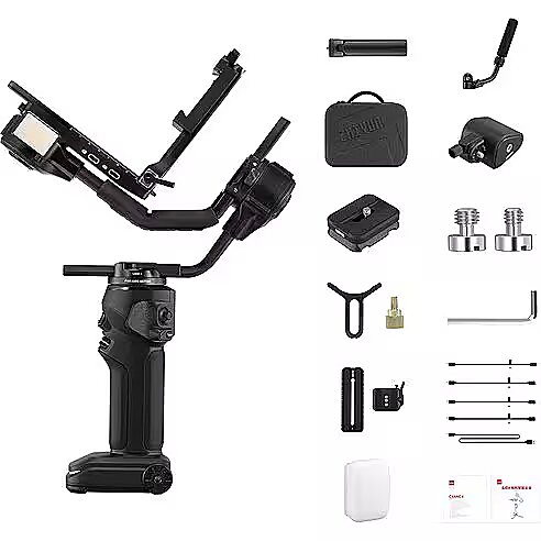 The four 18650 batteries support up to 12 hours of operation time and can be fully charged in less than two hours thanks to USB Power Delivery fast charging. Set includes Zhiyun Crane 4 stabilizer Sling handle Wrist rest Table tripod (WB2) Carrying case Camera backing base Lens support Double-layer quick release plate Reflector 3/8" screw 3 × 1/4" screw 1/4" wrench Sony USB-C - Multi USB control cable 2 × Canon control cable Panasonic control cable USB-C cable Quick start guide