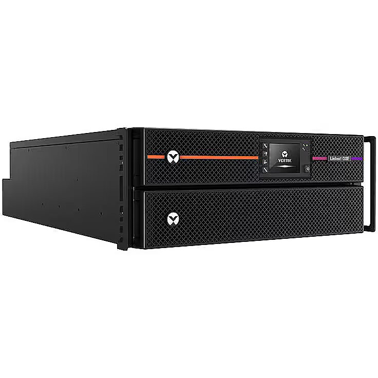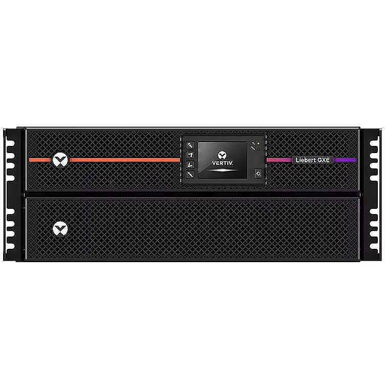 LongDesc - "The Vertiv Liebert GXE UPS is an affordable, efficient UPS designed for delivering best-in-class power protection to equipment at the edge of networks or in remote sites. This 6000 VA UPS offers online double conversion solution. Its unity output power factor (1.0) enables continuous and reliable power to more connected devices. The high efficiency in both online and ECO modes of operation (up to 98% in ECO mode) for this already affordable UPS further drives energy and operational costs savings. Additional external battery cabinets provide scalable runtime for those applications requiring longer period of backup in case of AC mains failures. This single-phase UPS can be mounted as a tower or placed inside a rack cabinet, with a gravity sensing LCD display to allow rack/tower configurations. It has remote management capability with optional network management cards. With proven reliability, it is ideal for critical applications in financial, government, and manufacturing industries."