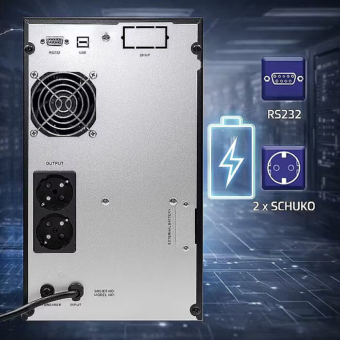 An online UPS power supply has a voltage that is constantly converted. In the event of an unexpected drop in mains voltage, the power supply keeps the connected device running thanks to built-in batteries that are constantly charged. Therefore, mains power is only needed to charge the batteries. Devices permanently connected to the power supply always receive clean, uninterrupted power from the battery, which is why the output voltage of an online UPS will always remain constant, regardless of the input voltage. The backup time for devices, depending on the load, is from a few to several dozen minutes. This is the time needed to save data and safely shut down the equipment.
