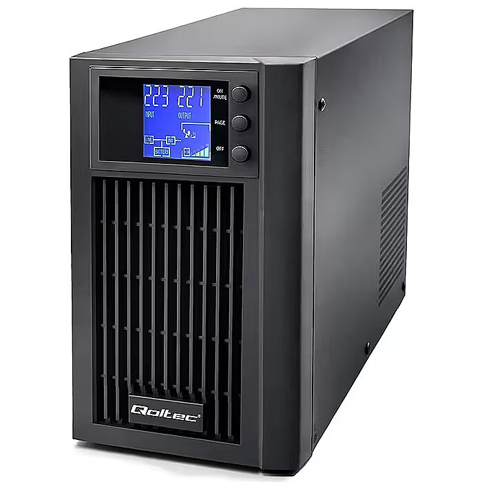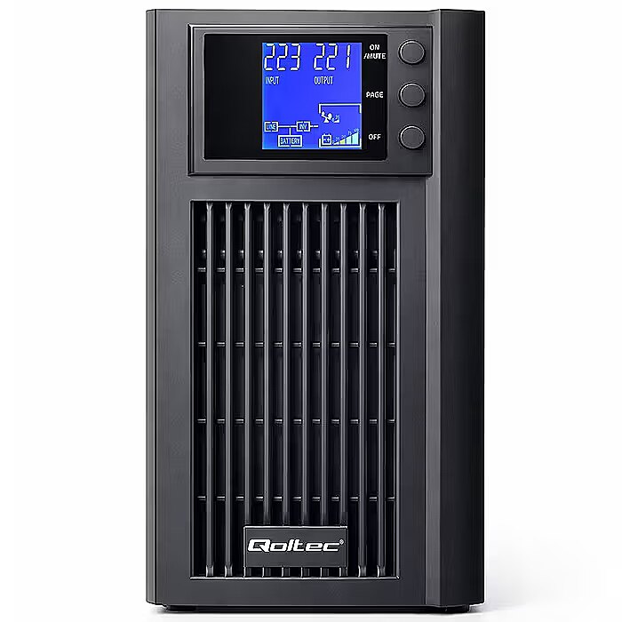 Qoltec UPS power supplies provide stable, interference-free, pure sine wave power. The pure sine wave output guarantees safe and stable power supply for computers, servers, network devices and electronic equipment. In the event of a power failure, the UPS quickly switches to battery mode, ensuring continuity of operation and protection against the effects of events such as voltage drops, short-term power failures or network parameter fluctuations.