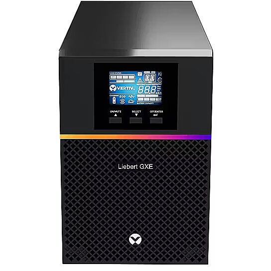 LongDesc - The Vertiv Liebert GXE UPS is an affordable, efficient UPS with high output power factor (0.9PF), which enables continuous and reliable power to more connected devices. With online double conversion technology, this 1.5kVA compact tower UPS protects devices against many disturbances. With proven reliability, it is ideal for critical applications in financial, government, and manufacturing industries. It has an intuitive LCD for local monitoring, configuration, and control. The high efficiency in both online and ECO modes of operation (up to 95% in ECO mode) for this already affordable UPS further drives energy and operational costs savings. An optional network management card allows remote management and server shutdown via the optional network card or (free) Vertiv Power Insight software. In addition to reliable power, having multiple monitoring options make this compact UPS ideal for delivering best-in-class power protection to equipment at the edge of networks or in remote sites.