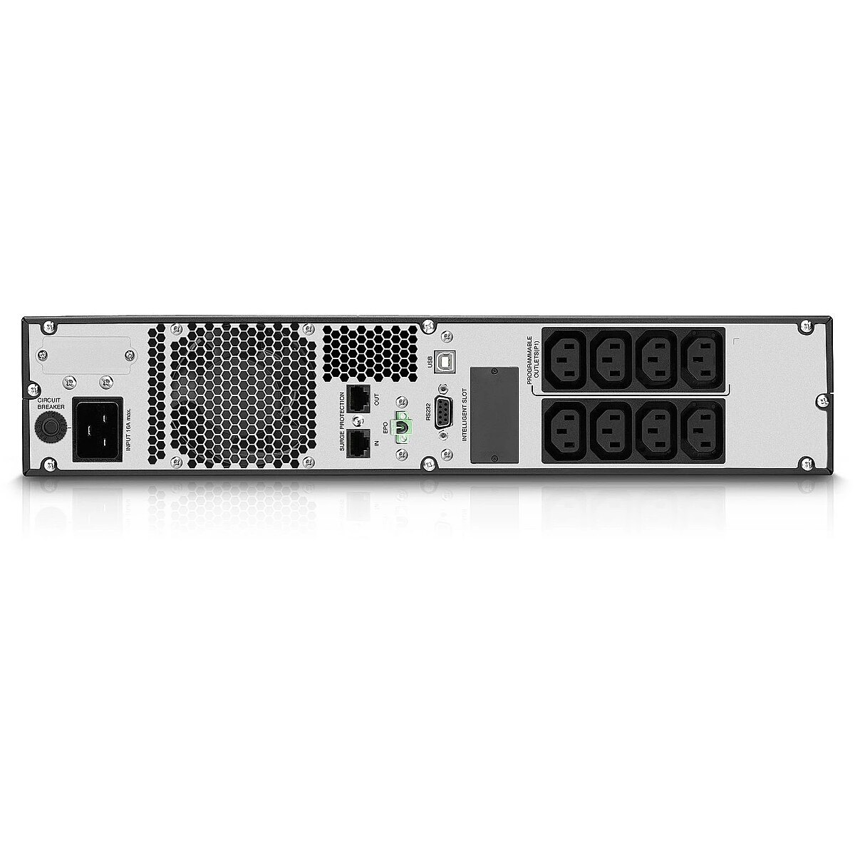 LongDesc - This Rack Mount UPS provides a backup power source for mission critical equipment in server rooms, data centers, and other vital equipment. It ensures a consistent flow of electricity to help prevent equipment failure and data loss during power failures, brownouts, or other power issues that can occur with power in your building. The USB port allows built in UPS configuration and control, and auto-shutdown features for your computers or servers.- 1500vA Rack Mount UPS with Pure Sine Wave Output with 8 IEC Outlets- Boost and Buck AVR automatically adjusts for under-voltage and over-voltage ensuring stable power and longer life batteries.- ECO (Efficiency Corrective Optimizer) for energy saving and EPO function (Emergency Power Off)- Programmable power management outlets maximize backup time to critical devices by setting shorter backup time for non-critical devices- Audio & Visual alarms for immediate warning of battery, load, and other issues